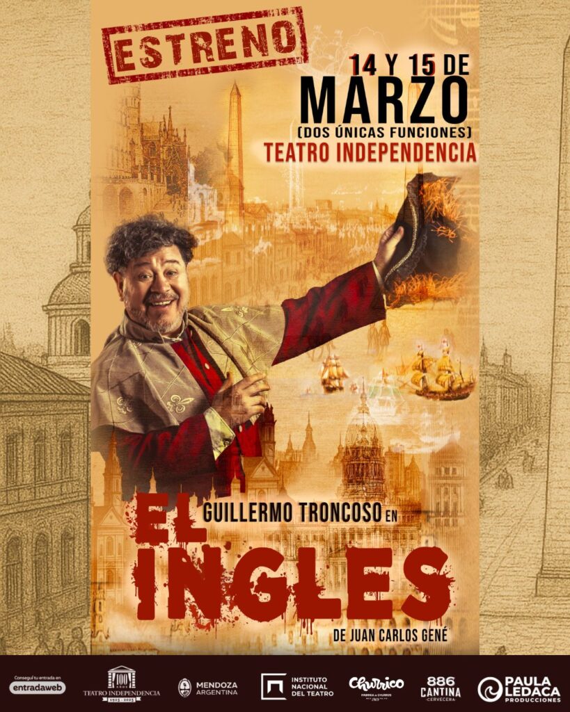 El 14 y 15 de marzo el Teatro Independencia dará inicio a su temporada 2026 con EL INGLÉS (elingles.teatro), la emblemática obra de Juan Carlos Gené. En esta ocasión, la creación se presentará en formato unipersonal, sostenida enteramente por la presencia de Guillermo Troncoso (guilletroncosoteatro), quien no solo la interpreta, sino que también la dirige y la lleva a escena. Reconocido por ser un referente del teatro mendocino y argentino, el actor ofrece al público una experiencia vibrante, donde la palabra se convierte en cuerpo y el cuerpo en memoria viva.