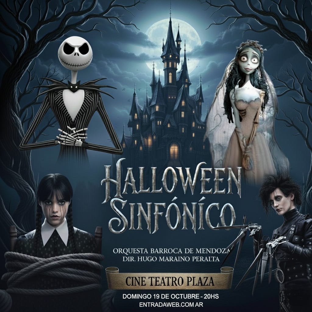 La Orquesta Barroca de Mendoza (orquestabarrocademendoza), bajo la dirección del Mtro. Hugo Mariano Peralta (peralta.mariano.5), presenta «Halloween Sinfónico«, un espectáculo especial que combina la fuerza de la música sinfónica con la magia del cine, en el marco de la celebración de Halloween. La cita es el domingo 19 de octubre a las 20 horas, en el Cine Teatro Plaza (Colón 27, Godoy Cruz), para vivir una noche inolvidable donde la música en vivo y las imágenes del universo de Tim Burton y mucho más se fusionan en un viaje sensorial lleno de misterio, emoción y fantasía.