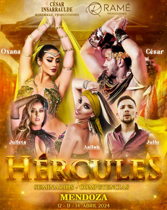Del 12 al 14 de abril Mendoza será el epicentro del bellydance en Argentina y por qué no del mundo. Grandes maestros de la danza darán seminarios, habrá competencia internacional con un jurado de lujo para finalizar con una gran gala presentando el espectáculo Hércules, Dioses del Olimpo el día domingo en la Nave UNCuyo.