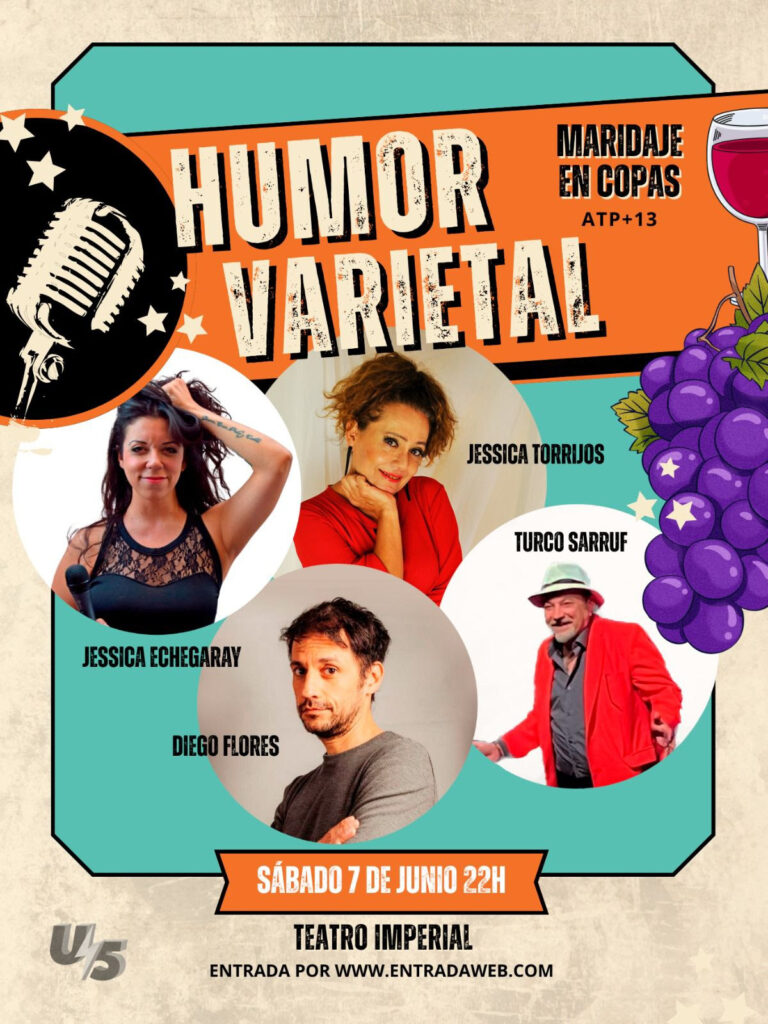 El Turco Sarruf (turcosarruff), Jessica Torrijos (jessica_torrijos), Diego Flores (diegofloresteatro) y Jessica Echegaray (jessikechegaray) nos invitan a una buena cata de humor, con variadas notas: dulces, ácidas, intensas y siempre embriagantes de risa.