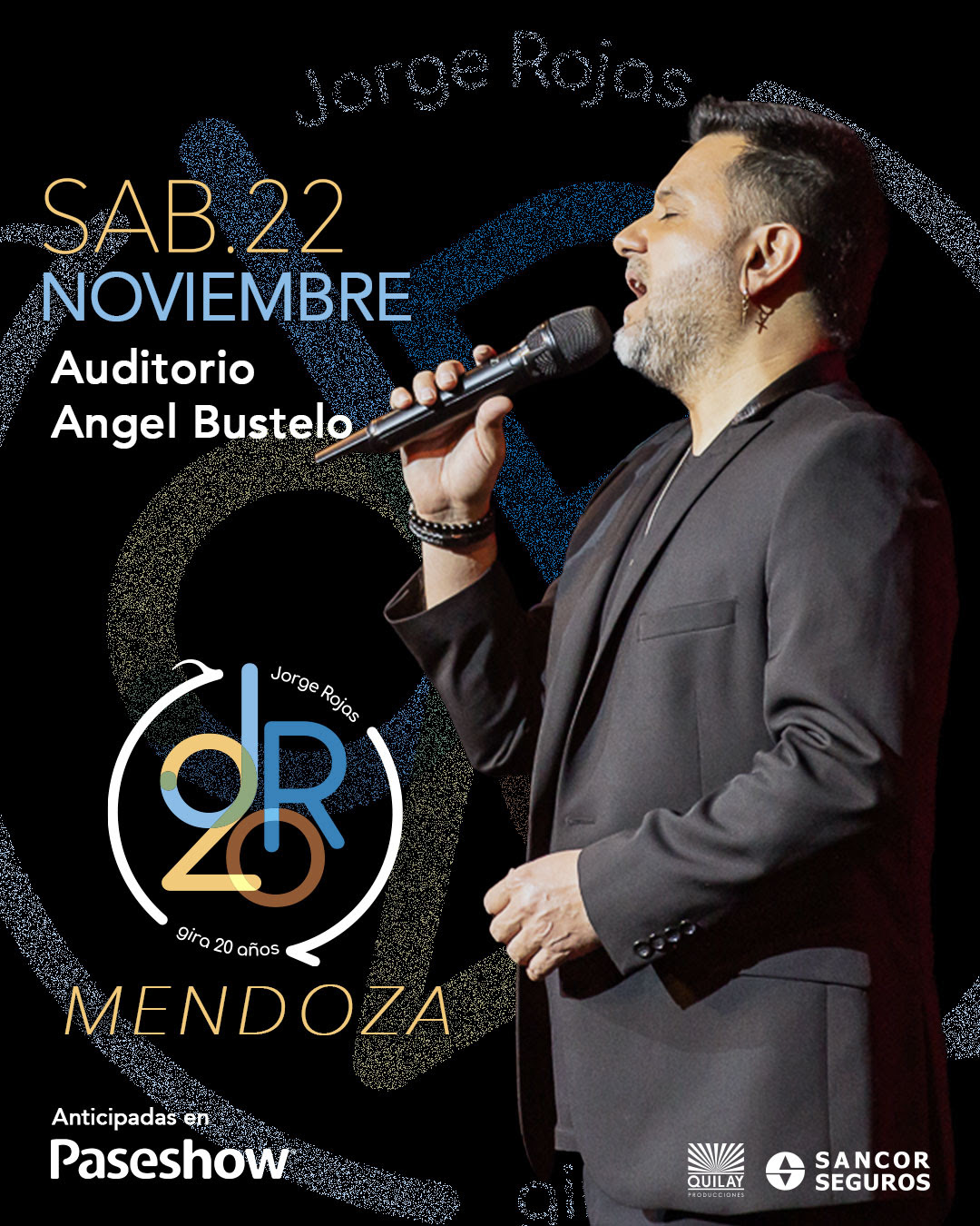 El sábado 22 de noviembre a las 21:00 hs, el Auditorio Ángel Bustelo será escenario de una noche especial junto a Jorge Rojas (jorgerojasoficial), una de las voces más emblemáticas de la música argentina. En el marco de su #JRGira20Años, el cantante repasará dos décadas de canciones y emociones compartidas. Las entradas anticipadas ya se encuentran disponibles en www.paseshow.com.ar