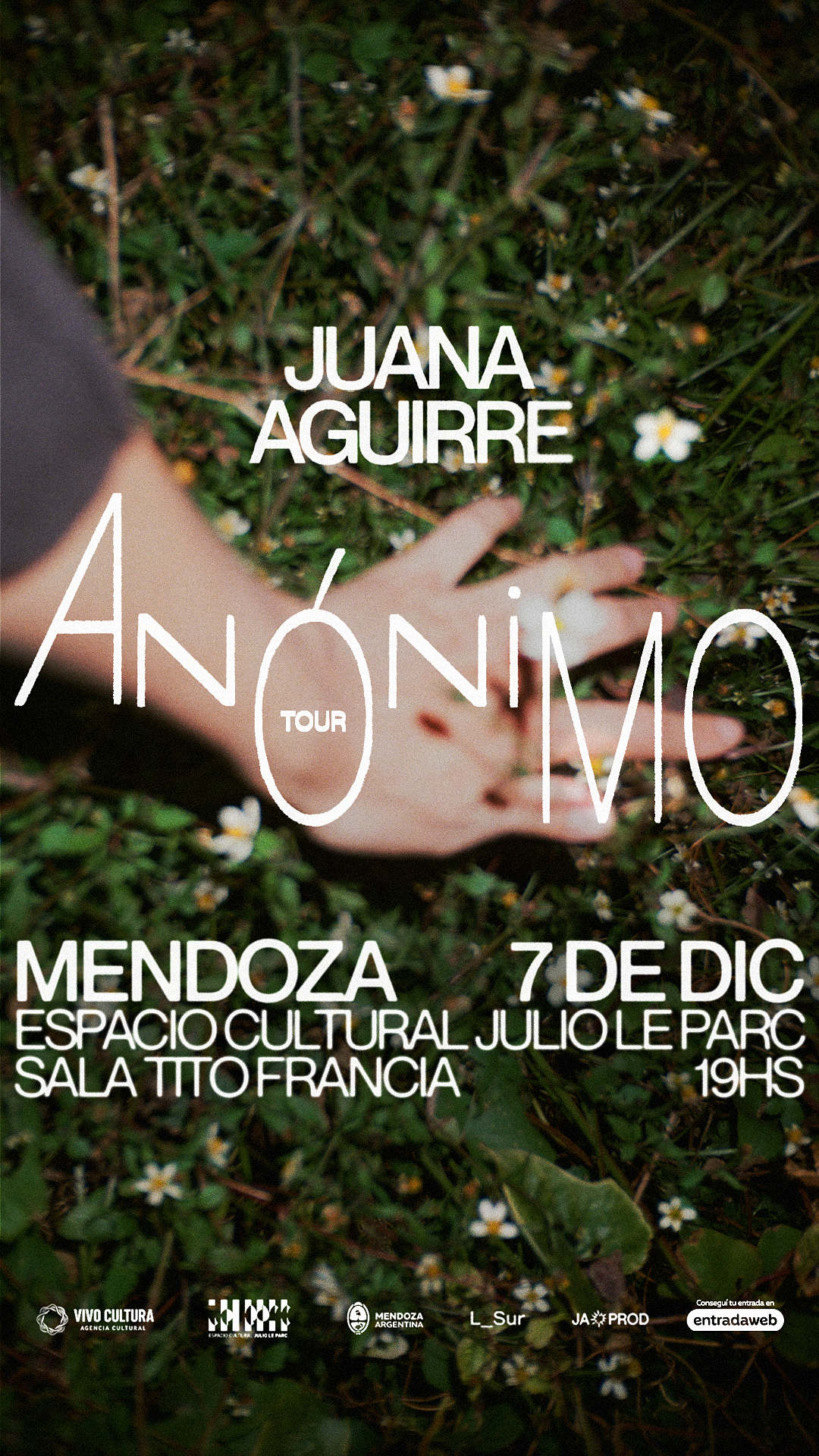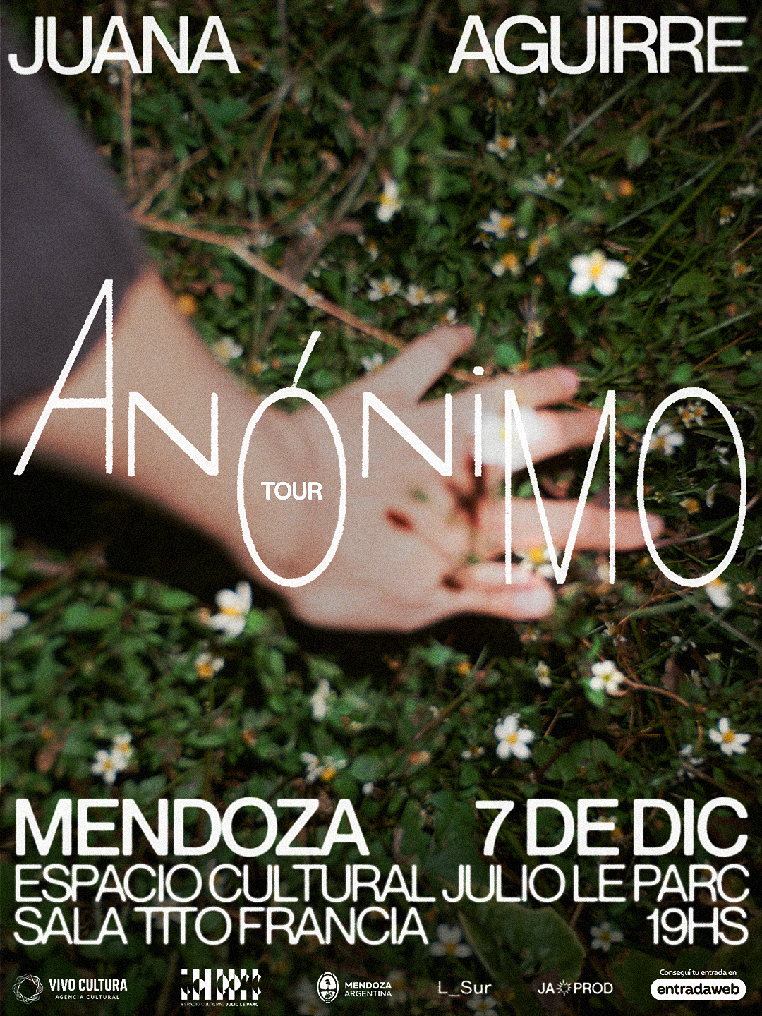 La reconocida cantautora argentina Juana Aguirre (juana.ag) llega por primera vez a Mendoza para presentar su segundo disco, “Anónimo”, un acto de transformación entre identidades, paisajes y emociones que se expanden y cobran nueva vida sobre el escenario. La cita es el domingo 7 de diciembre a las 19 horas en el Espacio Cultural Julio Le Parc. Entradas disponibles en Entradaweb. Entrada general anticipada $20.000 – Entrada general $25.000.