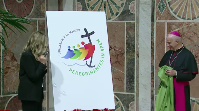 El Año Jubilar de la Esperanza tiene, además, su propio logo, compuesto por cuatro figuras que representan a la humanidad que, abrazada, llega desde los cuatro puntos cardinales para sostener la cruz. En este caso, su base es un ancla, como metáfora de la esperanza, en medio de un mar embravecido, para demostrar que la vida no siempre se desenvuelve en aguas calmas.