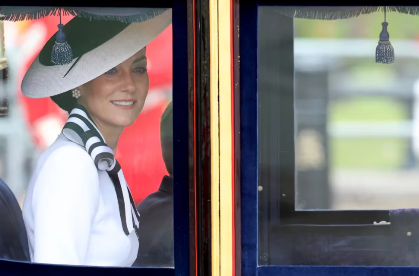 Kate, la princesa de Gales y futura reina británica, regresó radiante y oficialmente a sus actividades Royals este sábado para participar en Trooping the Colour, la ceremonia que celebra el cumpleaños del rey Charles III. Solo “part time” porque aun continúa con su tratamiento de quimioterapia por su cáncer no precisado. Fue ovacionada cuando apareció en el balcón del palacio de Buckingham con el resto de la Familia Real, al final de la ceremonia.