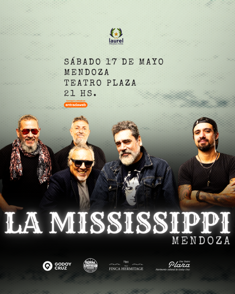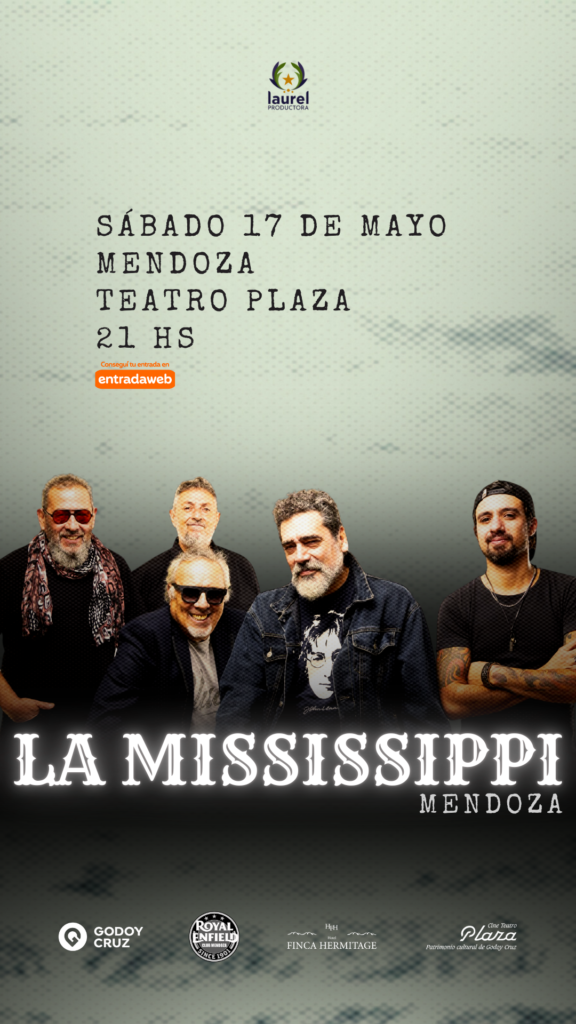Con una historia de éxitos y de grandes presentaciones, La Mississippi ha marcado el camino de varias generaciones de músicos y fanáticos. Así, luego de su impresionante show en el Estadio Luna Park, donde celebró sus 35 años junto a Billy Gibbons, guitarrista y frontman de ZZ Top, la banda se prepara para brindar un espectáculo único en el Cine Teatro Plaza (Colón 27, G. Cruz), el sábado 17 de mayo a las 21h. Este recital forma parte de la gira que los llevará por varias ciudades de la zona de Cuyo, y promete ser una noche inolvidable de blues y rock. Entradas en WWW.ENTRADAWEB.COM.AR