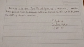 Para realizar éstas denuncias Nahir escribió en una hoja a su abogada «Autorizo a la doctora Raquel Hermida Leyenda a denunciar, tramitar, hacer público todo lo relatado sobre lo ocurrido el 29 de diciembre de 2017 y fechas anteriores», la firmó, aclaró y puso su número de documento.