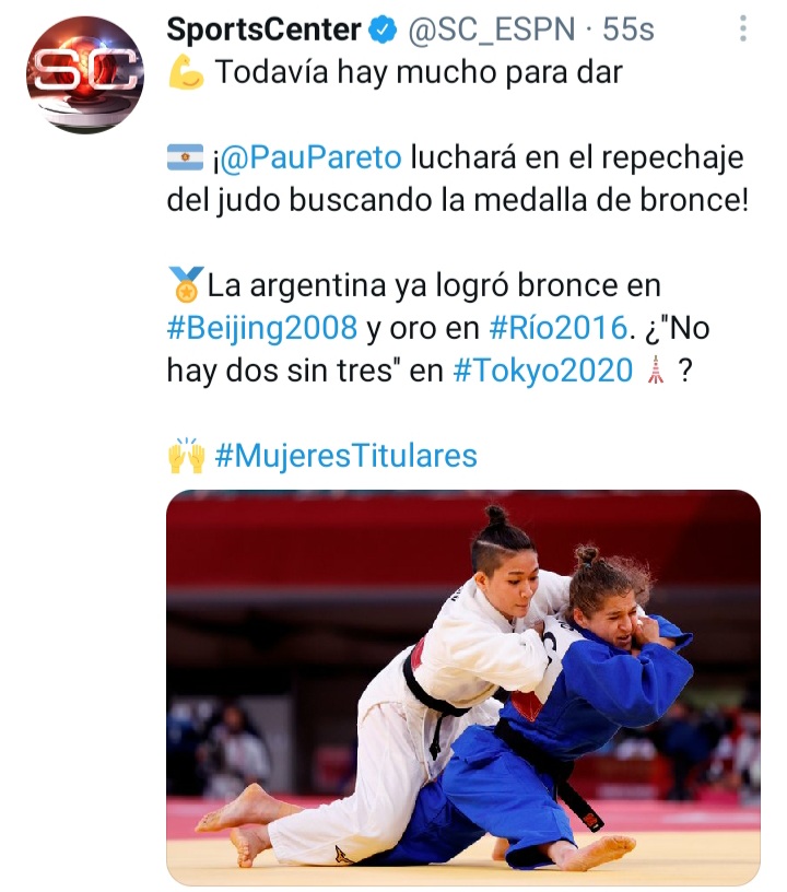 «Me tiene que ver el médico. Es el codo», Eso se fue diciendo Paula Pareto tras perder por ippon con la japonesa Funa Tonaki, por los cuartos de final de judo en la categoría -48 kilos. La Peque ya no puede repetir el oro de Río de Janeiro, pero sí tiene chances de ir por el bronce en el repechaje, Claro, habrá que ver cómo se encuentra de la lesión.