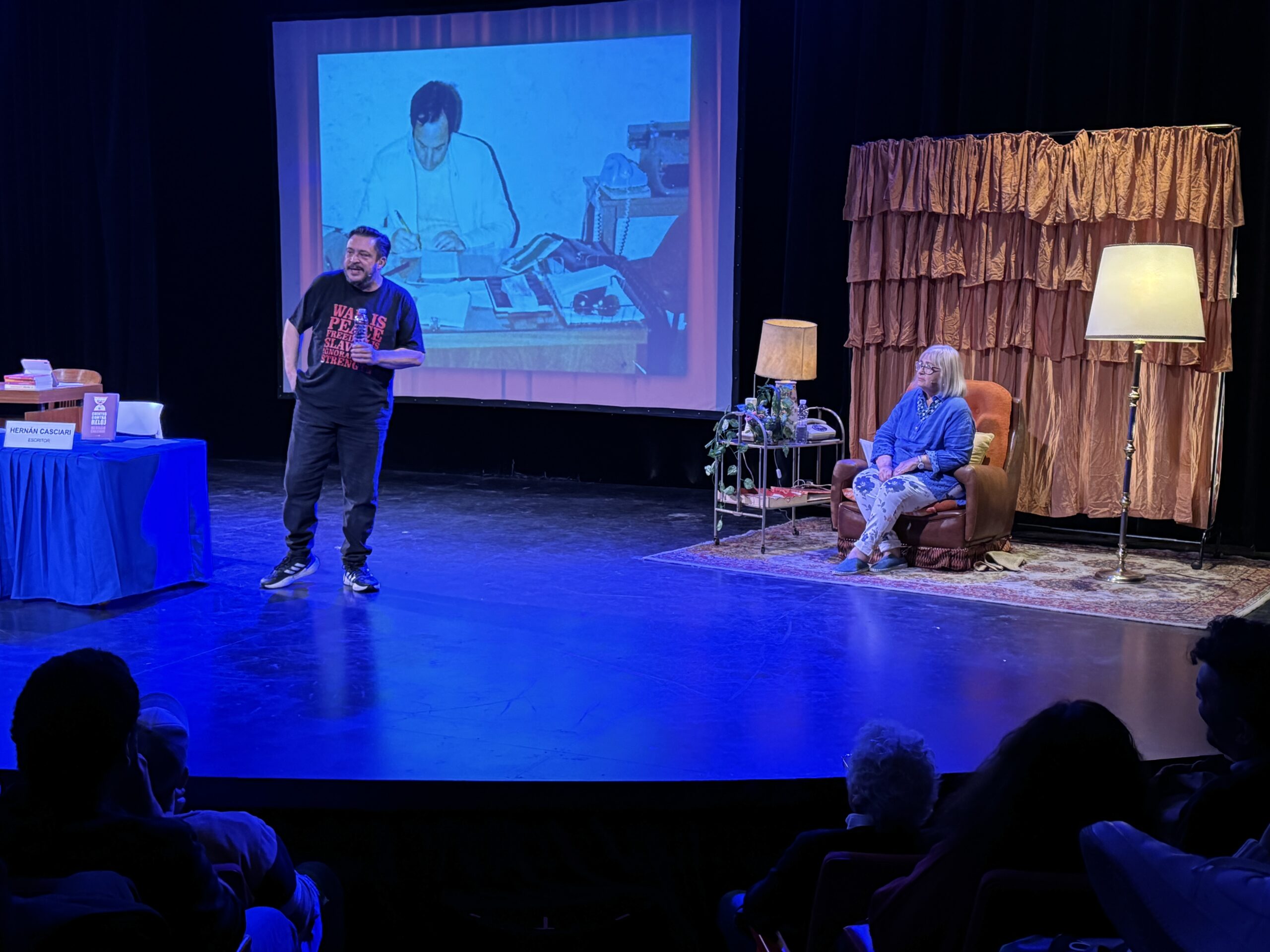 Mientras Casciari construye su propia historia, la mirada pícara de su madre trae un poco de luz e ironía en la trama. En la obra también está acompañado del pianista Juan Carabajal, primo del escritor, a cargo de la música en vivo.