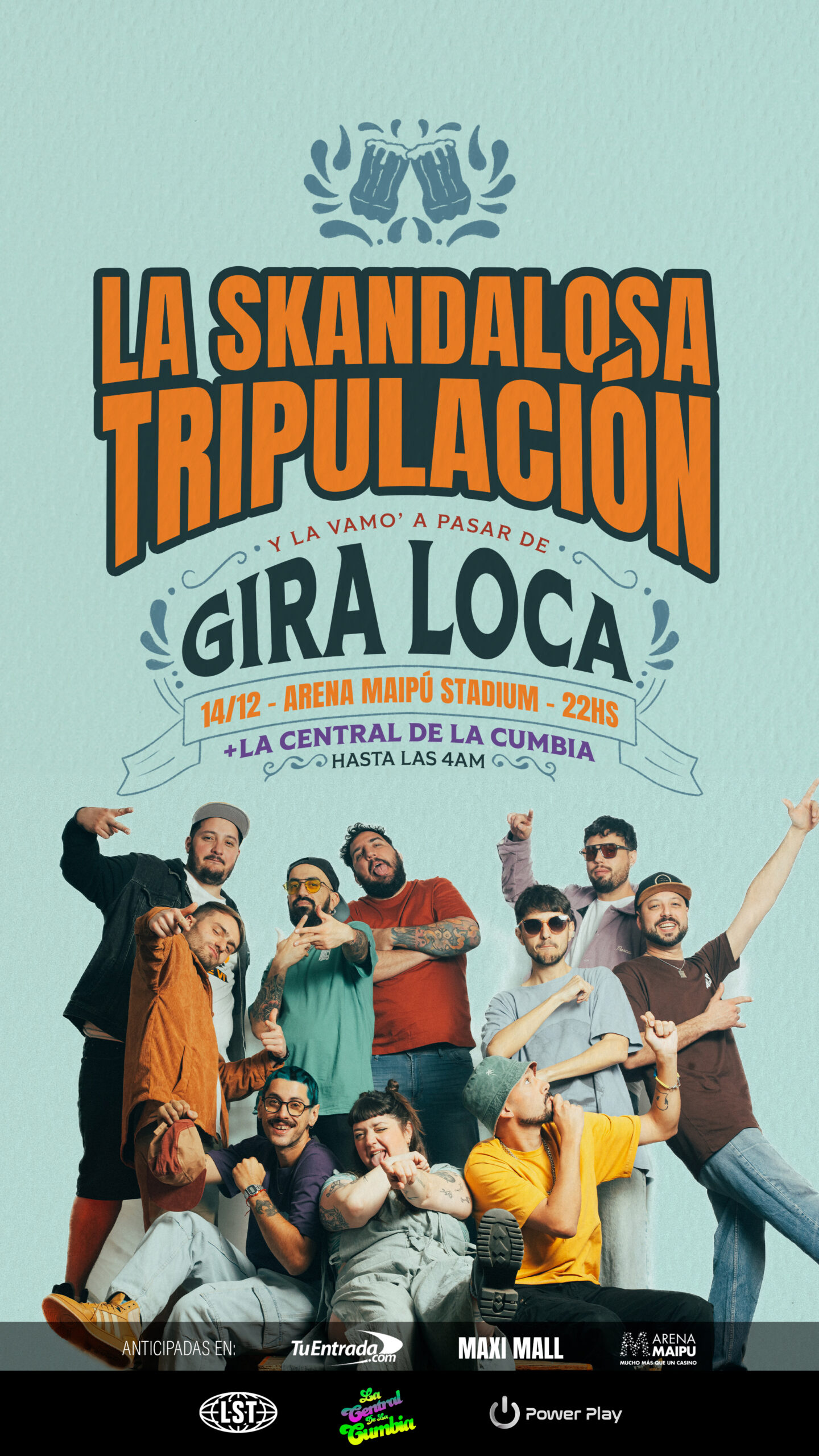 Una verdadera Gira Loca que encenderá el Arena Maipú Stadium con el sonido más auténtico de la Skandalosa Tripulación. Las entradas están disponibles en Tuentrada.com, Maxi Mall y boletería del Arena.