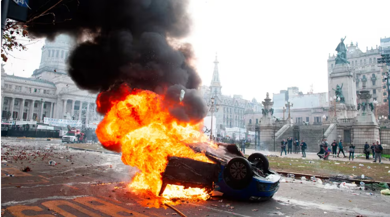 En este sentido, en la tarde del miércoles las afueras del Parlamento se convirtieron en un campo de batalla en el que chocan las fuerzas de seguridad con las organizaciones sociales, piqueteras, de izquierda, peronistas, de derechos humanos, asambleas barriales y sindicatos que se manifiestan.