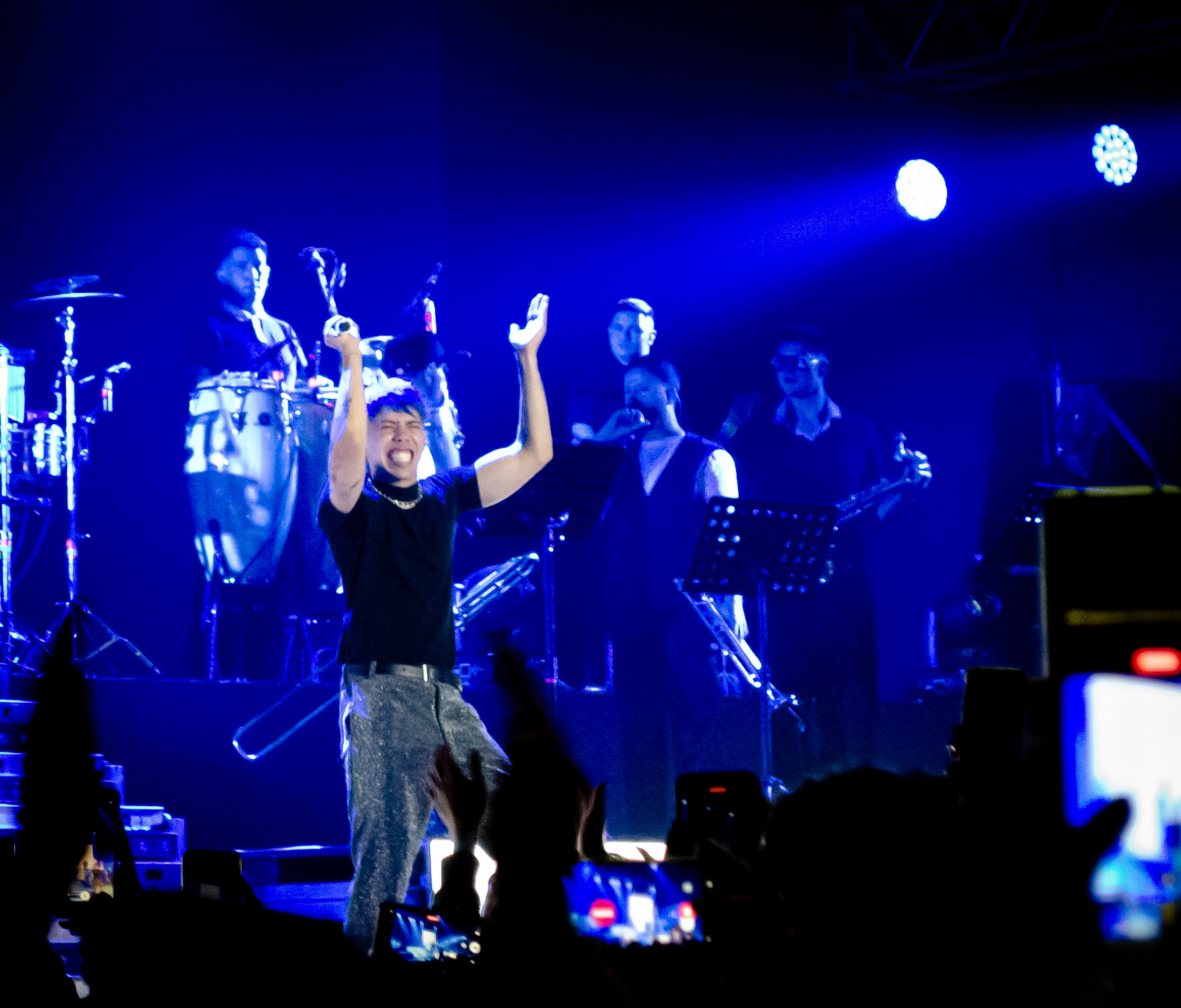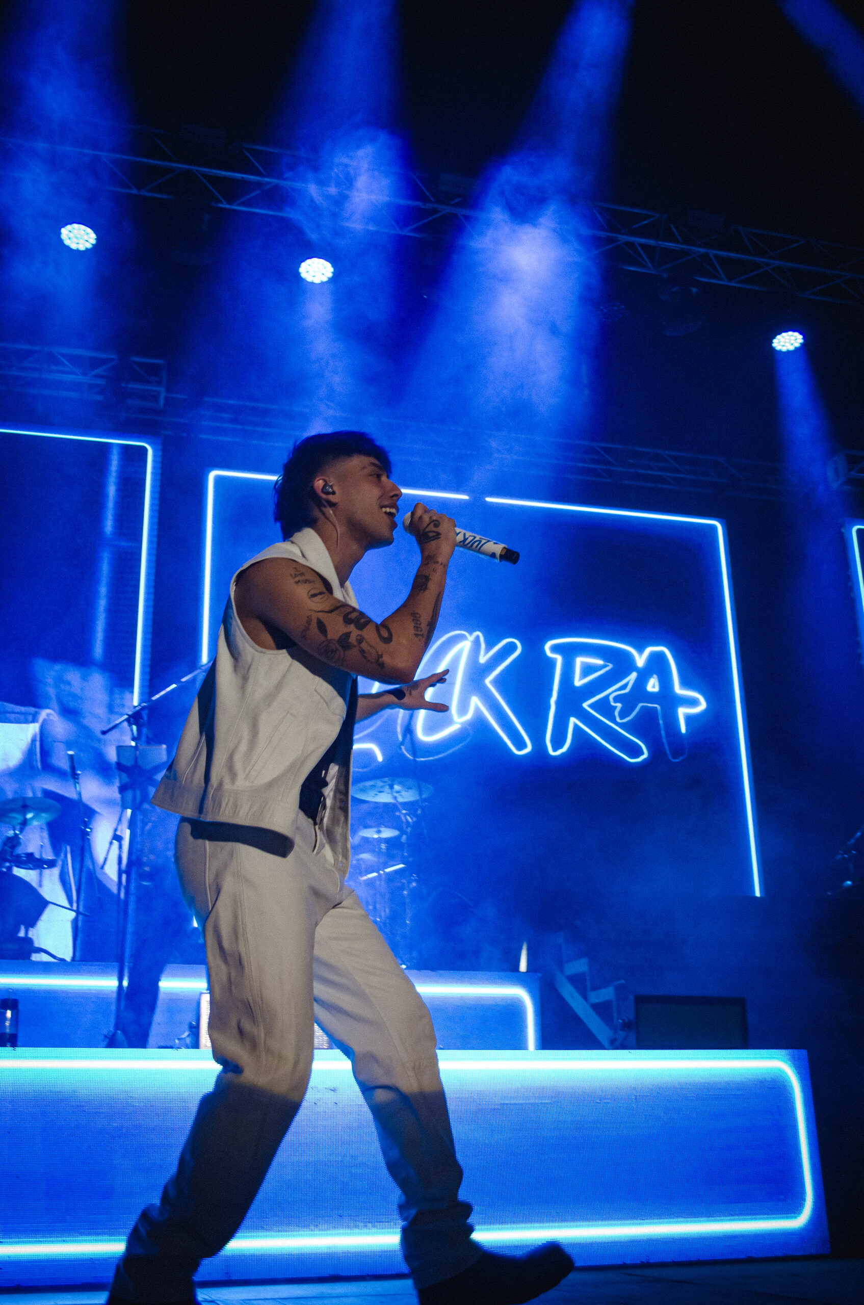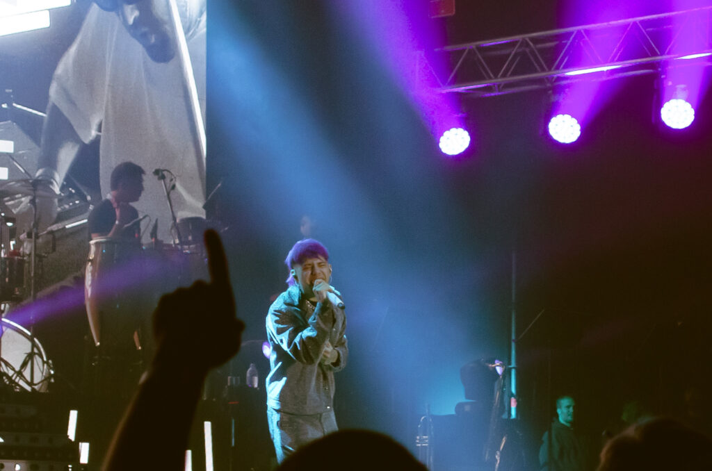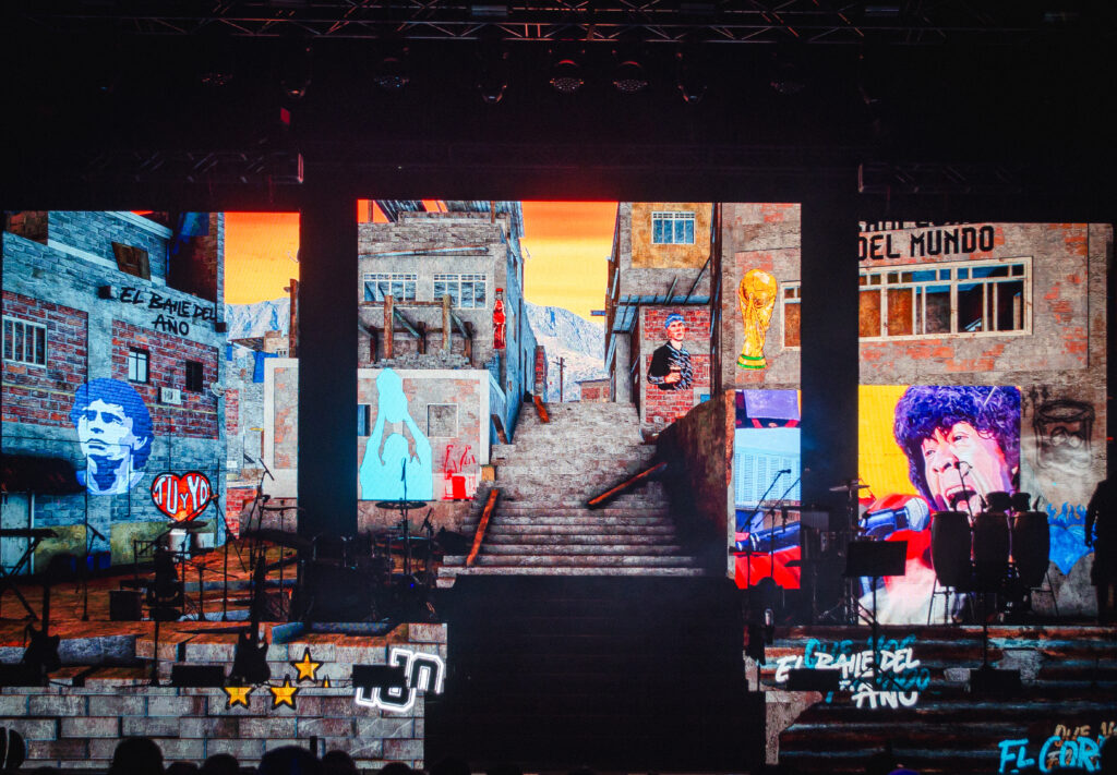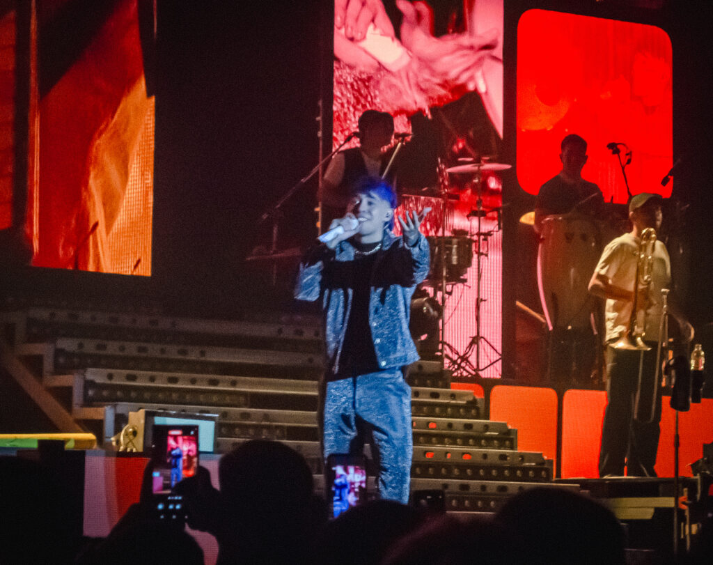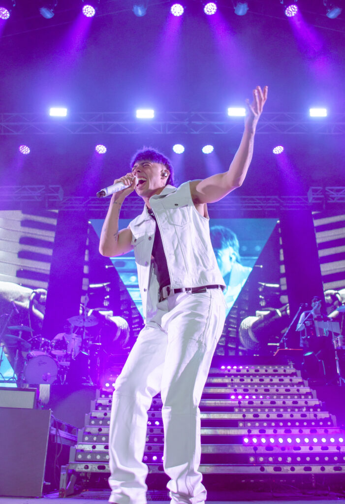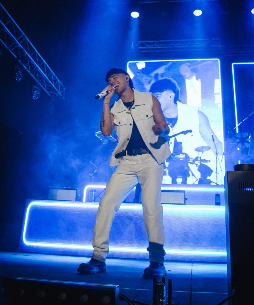 El cantante que viene cosechando grandes logros levantó el telón poco más de las 23.30 al ritmo del trap, el pop, reggaetón y el cuartero. Vestido con un pantalón y chaleco blanco acompañado de remera negra comenzó el espectáculo con “Te Mentiría”, desatando la ovación de sus seguidores.