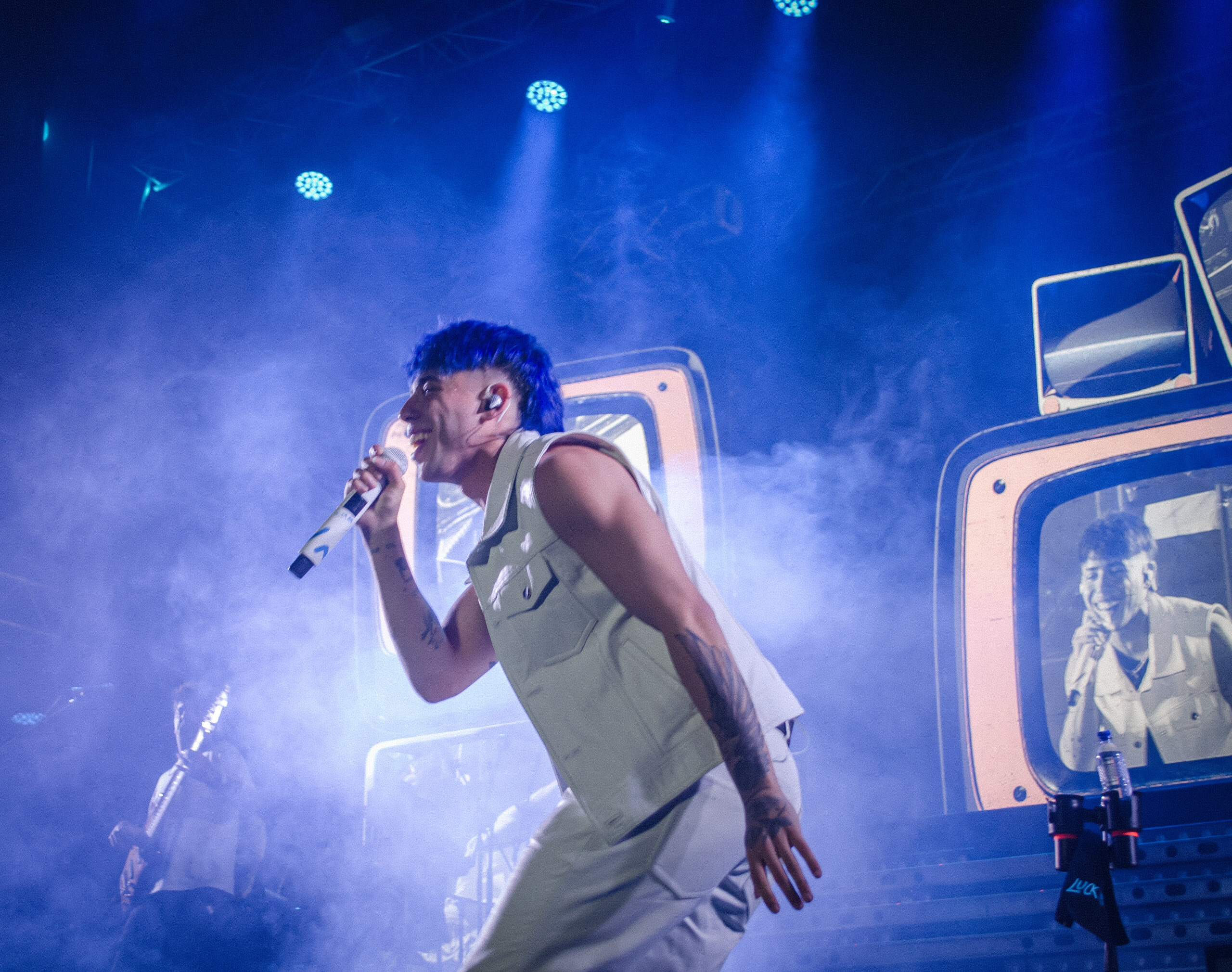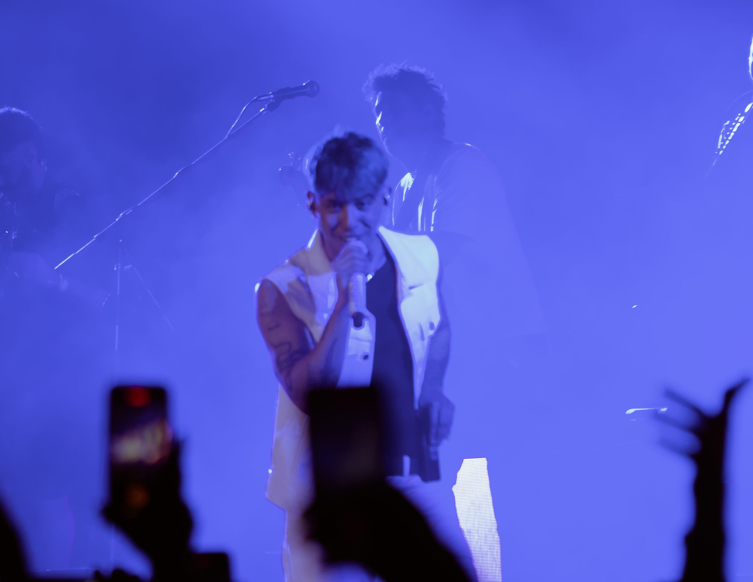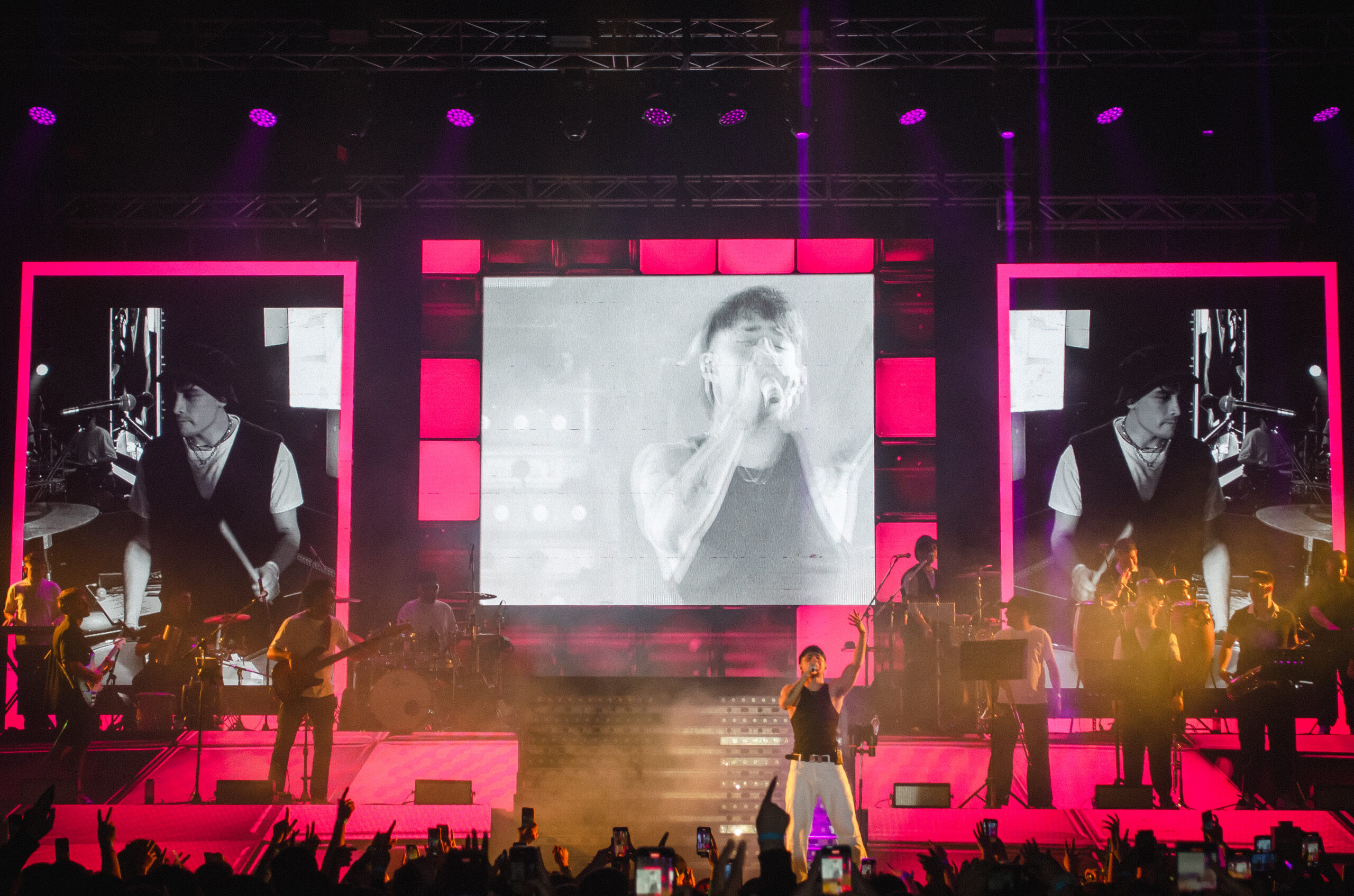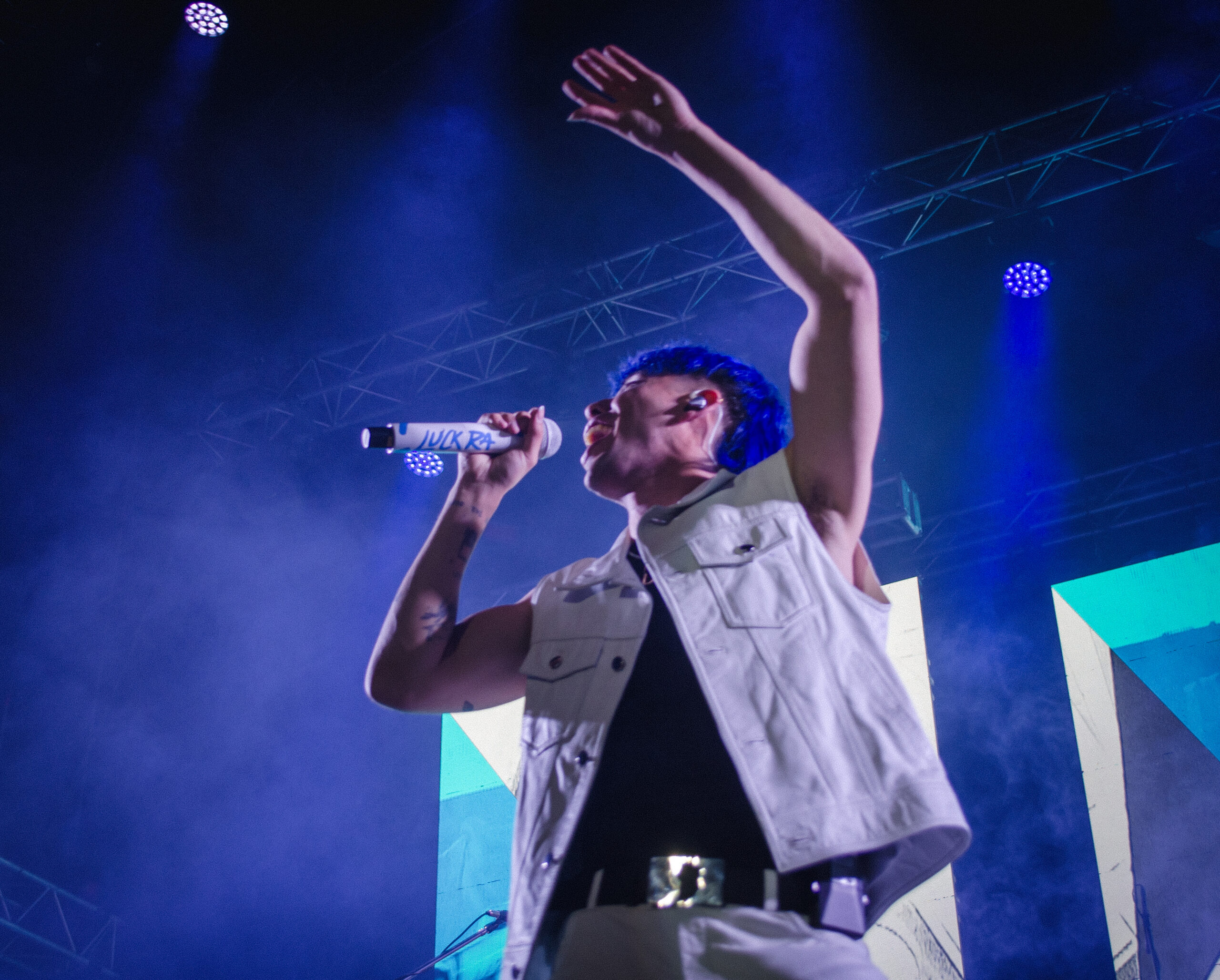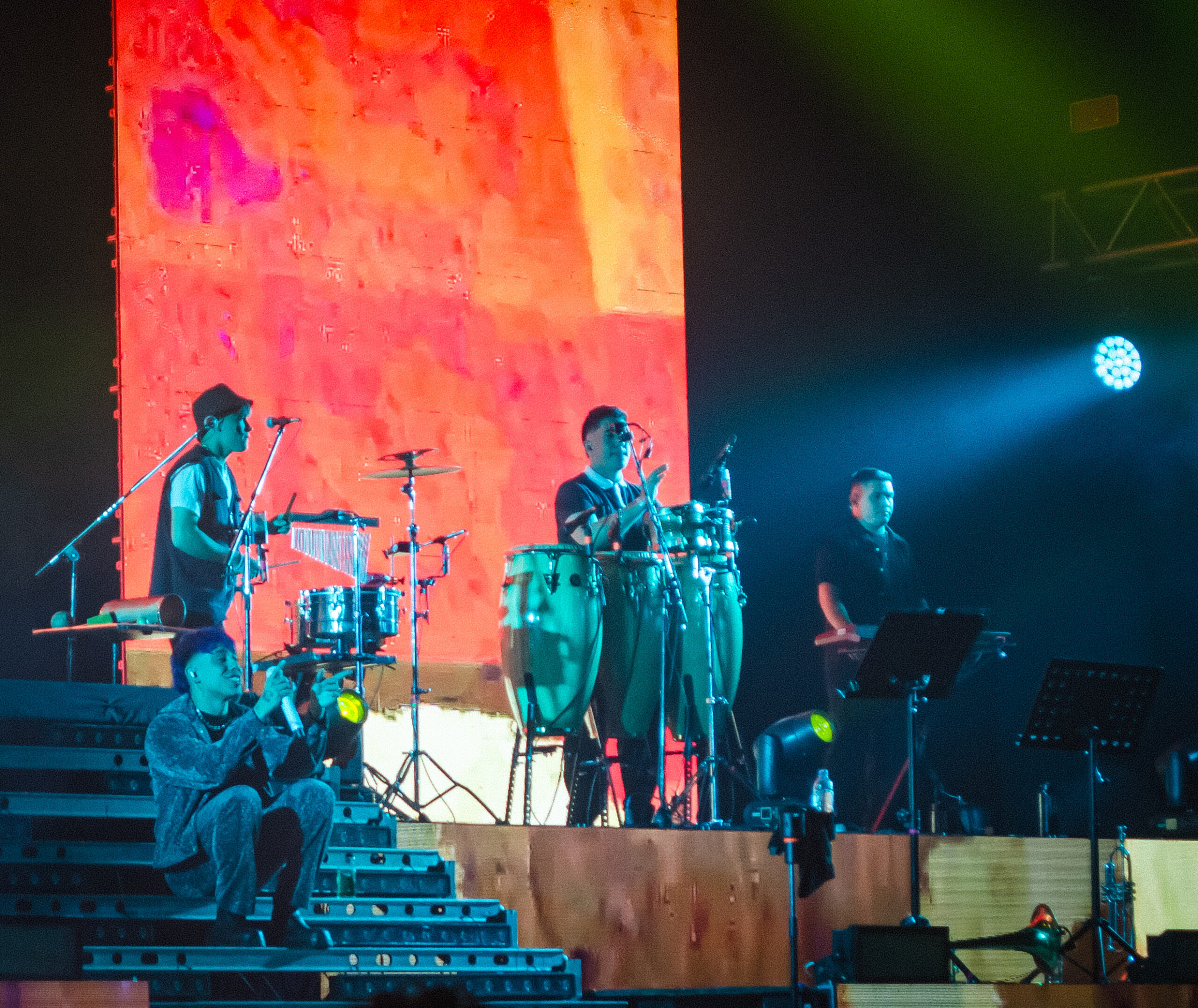 El cantante que viene cosechando grandes logros levantó el telón poco más de las 23.30 al ritmo del trap, el pop, reggaetón y el cuartero. Vestido con un pantalón y chaleco blanco acompañado de remera negra comenzó el espectáculo con “Te Mentiría”, desatando la ovación de sus seguidores.