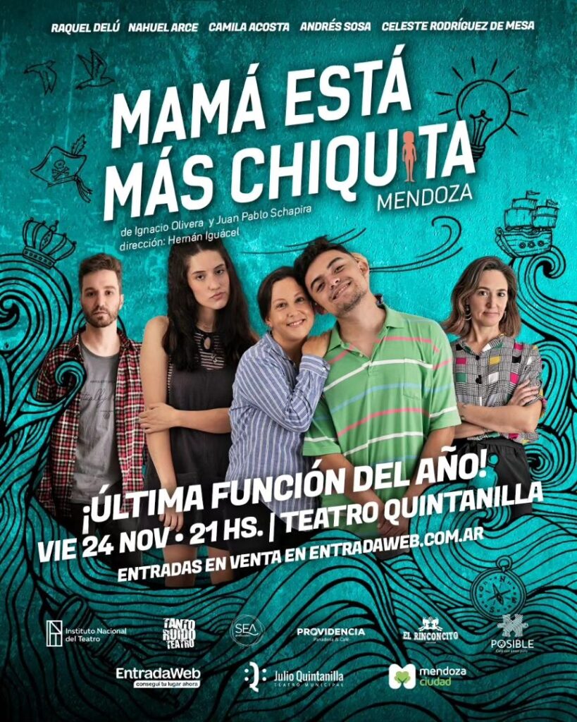Luego de un exitoso año de funciones en distintas salas de Mendoza, la versión local del premiado musical del off porteño Mamá está más chiquita se despide con una última fecha. Será el viernes 24 de noviembre, a las 21, en el Teatro Quintanilla.