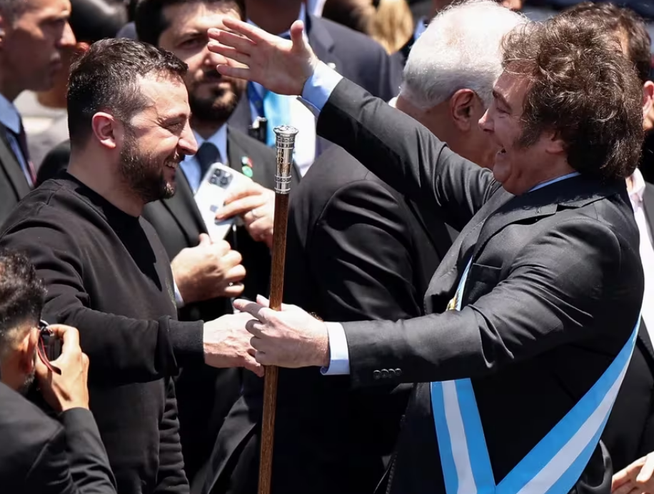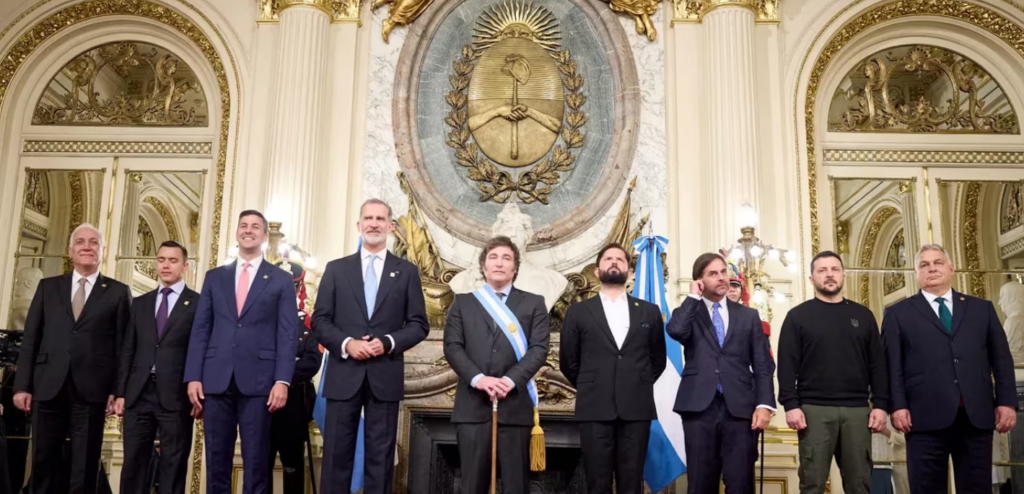 Después el presidente, junto a la canciller Diana Mondino, recibieron el saludo de los jefes de estados que llegaron al país para presenciar la asunción.