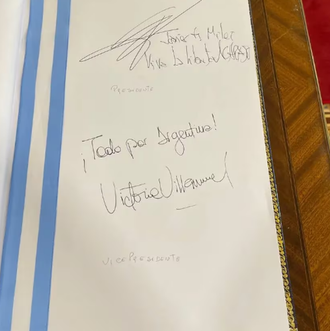 El Presidente concluyó: “Abracemos estas ideas y vamos a volver a ser una potencia. Qué Dios los bendiga y las fuerzas del cielo nos guíen para hacer el mejor gobierno de la historia. Viva la libertad, carajo”. Durante su discurso estuvo acompañado, unos pasos más atrás, por su hermana Karina Milei y su pareja Fátima Flores.