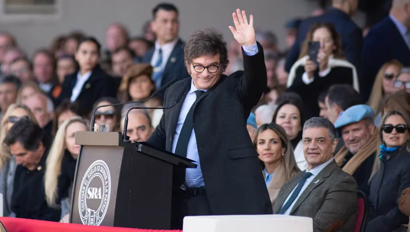 Milei protagonizó el último discurso de la apertura de la exposición anual de la SRA en Palermo y subió al estrado luego de que el presidente de la entidad Nicolás Pino hubiese manifestado el apoyo general a la marcha del Gobierno pero remarcado, también, una serie de puntos de divergencia con la gestión actual, sobre la persistencia de los derechos de exportación y los múltiples tipos de cambio.