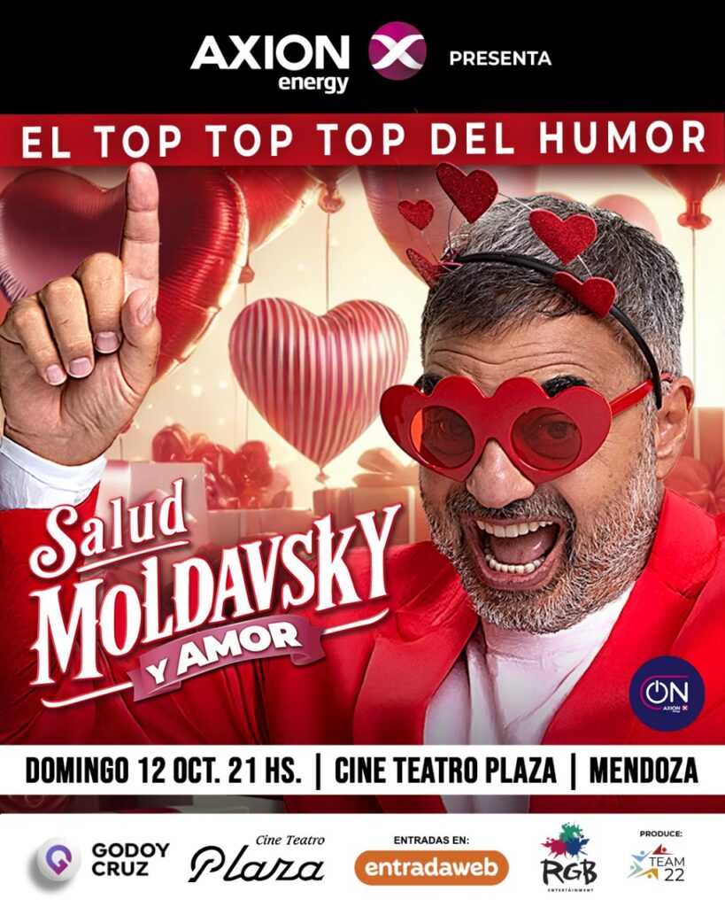 Roberto Moldavsky (moldavskyroberto) llega a Mendoza con su nuevo show “Salud, Moldavsky y Amor”. Tras agotar funciones en calle Corrientes, el reconocido humorista inicia la gira nacional de su nuevo espectáculo, el domingo 12 de octubre, en el Teatro Plaza de Godoy Cruz. Las entradas están disponibles en Entradaweb.com.ar.