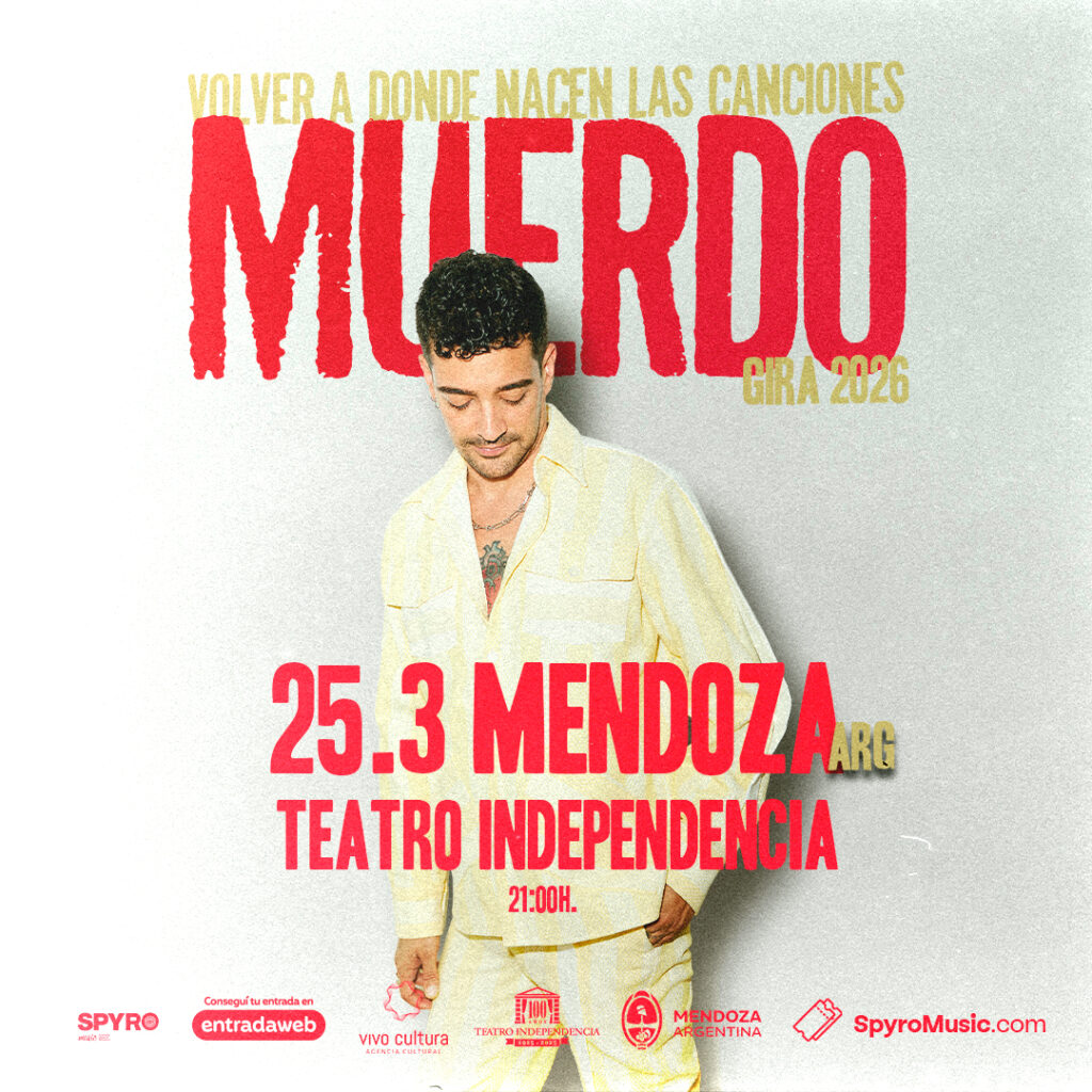 Después de recorrer escenarios de todo el mundo y consolidarse como una de las voces más auténticas y comprometidas de la escena iberoamericana, MUERDO (muerdomusica) emprende una nueva travesía: “Volver a donde nacen las canciones”. Entradas disponibles en Entradaweb