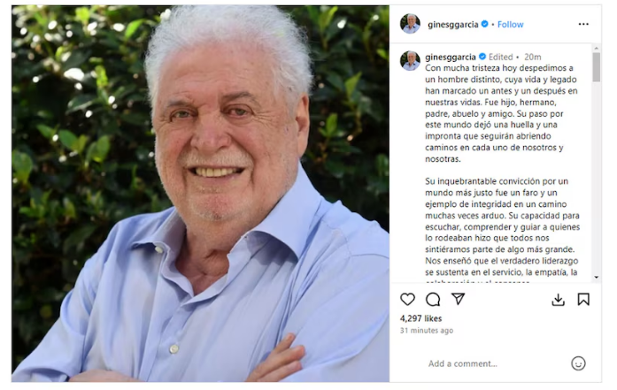 “Hoy, mientras lloramos su partida, también celebramos su vida. Recordaremos sus risas, su mirada siempre distinta, sus ideales por una Argentina mejor, y su eterna pasión por Racing”, recordaron en el mismo mensaje, que concluye: “Gracias Ginés. Por ser un hombre extraordinario, el sanitarista contemporáneo que cambió paradigmas y cultivó su lealtad de un modo único. Su memoria vivirá en nuestros corazones y en cada paso que demos hacia un mundo”.