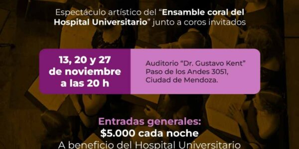 Festival de coros: «Resuena Salud»: Espectáculo artístico del «Ensamble coral del Hospital Universitario» junto a coros invitados. Una propuesta que invita a disfrutar de la música como camino hacia el bienestar y la salud emocional. Info completa en la nota!