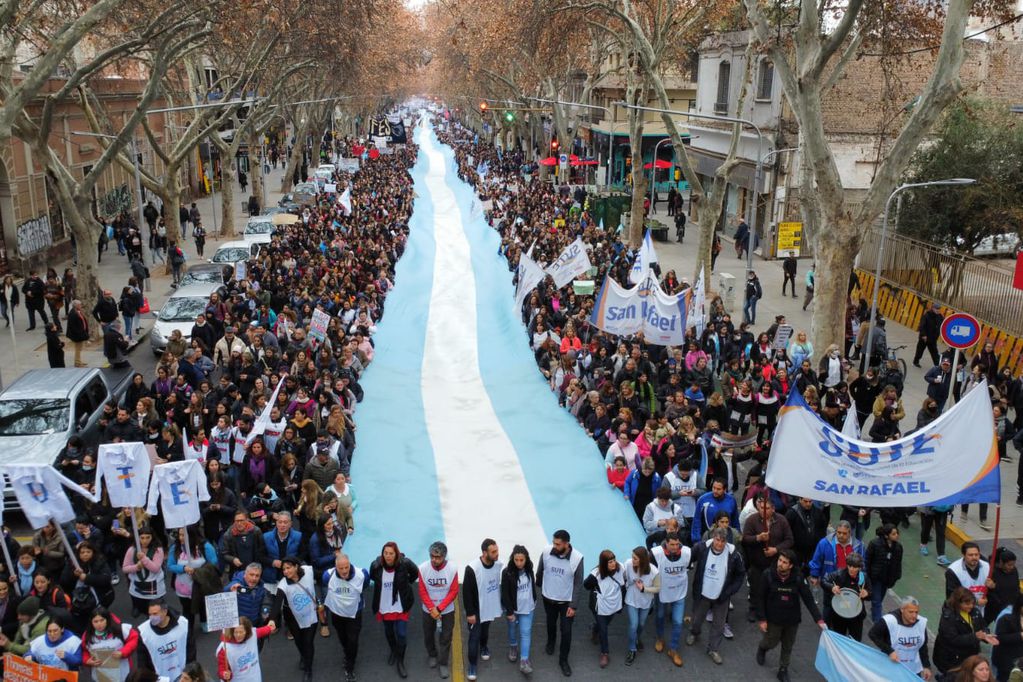 Junto con el SUTE, la Asociación Mendocina de Profesionales de la Salud (AMPROS), que también llamó a un paro por 48 horas; la CTA de los Trabajadores; el sindicato de docentes privados (SADOP); Judiciales; y la Unión Personal de Juegos y Casinos Mendoza (Upjcm); se concentraron primero en Godoy Cruz y Patricias Mendocinas, para luego marchar hacia Casa de Gobierno.