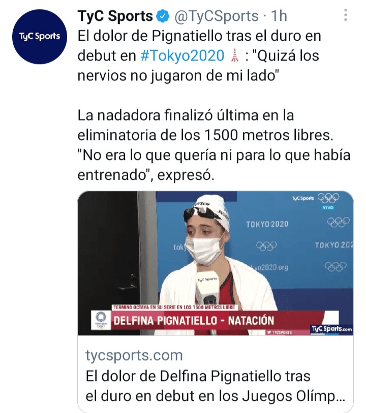 Es regla en los Juegos Olímpicos que los atletas deban hablar con los medios después de cada competencia. ganen o pierdan, estén felices o contentos. Delfina Pignatiello encaró el micrófono con mucha altura, «comiéndose» las lágrimas que querían brotar pero las mantuvo sin salir, quizá pensando que, quizá, del otro lado del mundo, había familia que sentía más dolor que ella. Su debut olímpico no había sido el soñado.