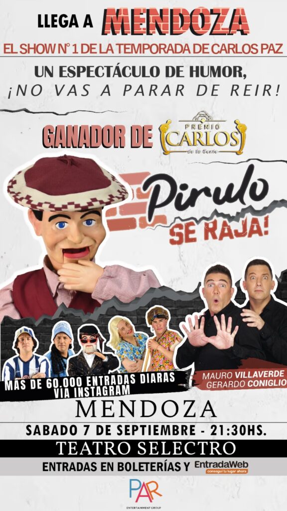Llega a Mendoza, el personaje de humor más desopilante del país. «Pirulo se raja», el espectáculo cómico con Mauro Villaverde (mau_villaverde) y Gerardo Coniglio (gerardoconiglio) junto al inconfundible Pirulo (pirulo.ook) tendrá una única función, el sábado 7 de septiembre, en el teatro Selectro. Las entradas están disponibles en Entrada Web.com.ar.