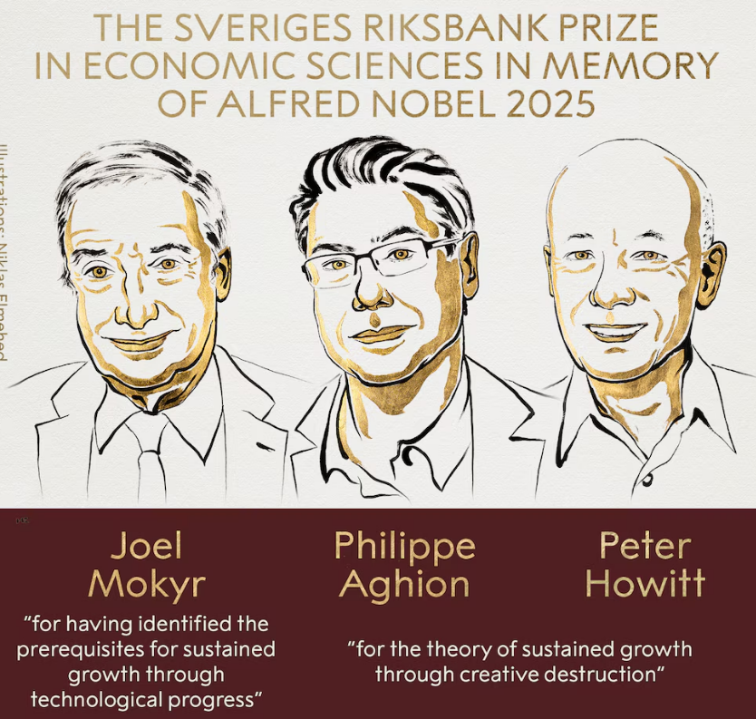 El Premio Nobel de Economía 2025 se ha concedido a los estadounidenses Joel Mokyr y Peter Howitt y al británico Philippe Aghion por su labor para explicar «cómo la innovación impulsa un mayor progreso». Con este galardón culmina la edición 2025 de los prestigiosos galardones, que comenzó el lunes pasado.