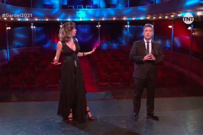 Entre un show y otro, entre el anuncio de un ganador y el siguiente, la gala mostró, casi como norma, el backstage de cada producción musical. Cada tanto, la cámara volvió a los presentadores, Jey y Eleonora, que no tuvieron más producción que la de ese escenario de teatro con una platea de fondo vacía (con los años eso quedará como uno de los tantos testimonio de esta pandemia que le puso el freno más drástico a la música en vivo). Ante esa escasez de recursos, lejos de apelar a un excesivo histrionismo, cada uno cumplió su rol y al mostrarse casi tentados de risa por el cruce de comentarios, conectaron cada bloque de una manera muy informal, distendida y llevadera.
