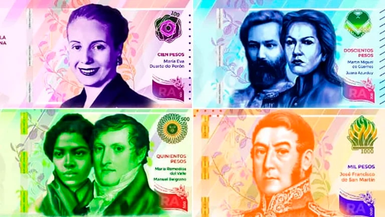 “La nueva familia se compone de cuatro denominaciones que incluyen la representación de tres mujeres y tres varones que jugaron un papel decisivo en la construcción de nuestro país, figuras trascendentes que rompieron el molde de su época y lucharon por la independencia, el desarrollo, la inclusión y la ampliación de derechos”, detalló el BCRA.