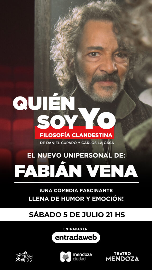 Fabian Vena (fabianvenaestudio) presenta la comedia «Quién Soy Yo (Filosofía Clandestina)”. El actor protagoniza su segundo unipersonal y en su segunda temporada en cartelera regresa a Mendoza, con una única función, el sábado 5 de julio, en el teatro Mendoza. La primera preventa de entradas está disponible en Entradaweb.com.ar.