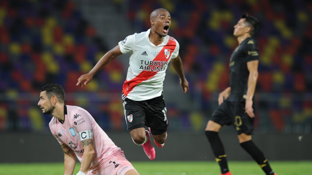 El primer tiempo River fue superior y lo terminó ganando por 1 a 0 con un gol de cabeza del colombiano Borré. En el segundo tiempo el encuentro se emparejó sobre todo en el manejo de pelota en mitad de cancha, pero Pizzi, entrenador de Racing hizo dos cambios más ofensivos y le dio espacio al equipo millonario para cerrar y golear el encuentro.