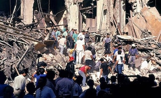 El 17 de marzo de 1992 a las 14.47 un coche bomba voló el edificio de la sede diplomática israelí en la esquina de Arroyo y Suipacha, obra de la Jihad Islámica, brazo armado del Hezbollah. La investigación de la Corte Suprema fue un total fracaso. Durante años ni siquiera se estableció el número exacto de víctimas, finalmente fijado en 22. No hubo detenidos ni se sabe cómo se planificó el ataque.