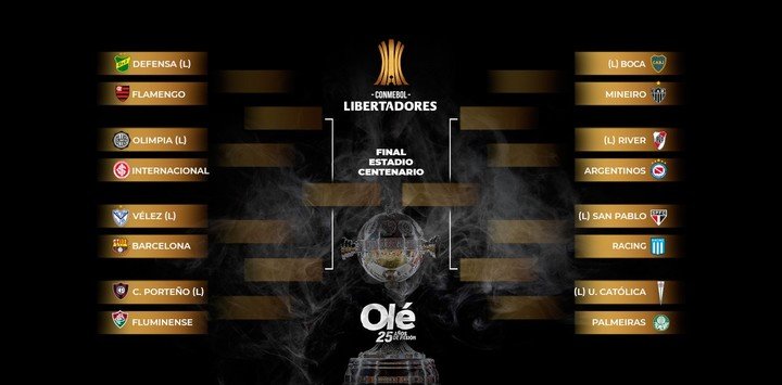 En cuanto a los cruces de la Copa Libertadores Boca jugará ante Atlético Mineiro, River se las verá con Argentinos, y si ambos pasan, habrá superclásico en Cuartos de final.