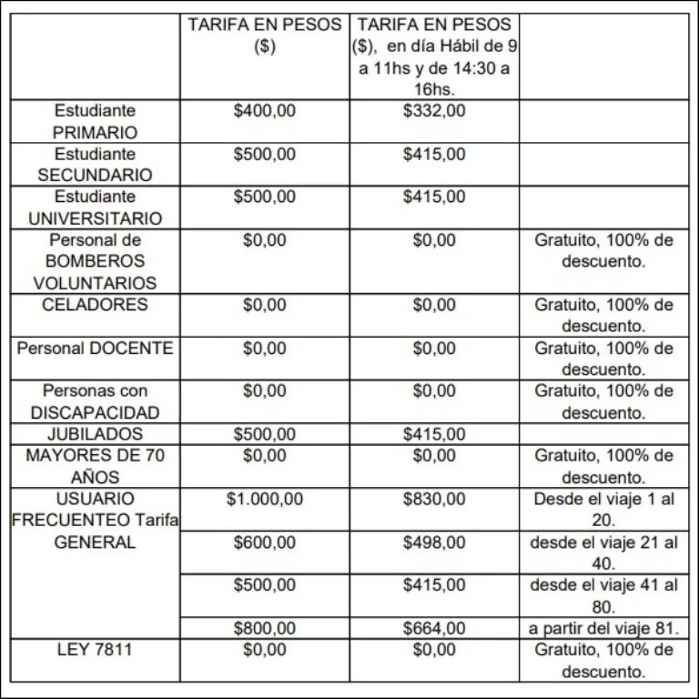 Cabe destacar que el boleto de usuario frecuente en la actualidad tiene un costo de $850, también con descuentos en los horarios menos de menor demanda.
