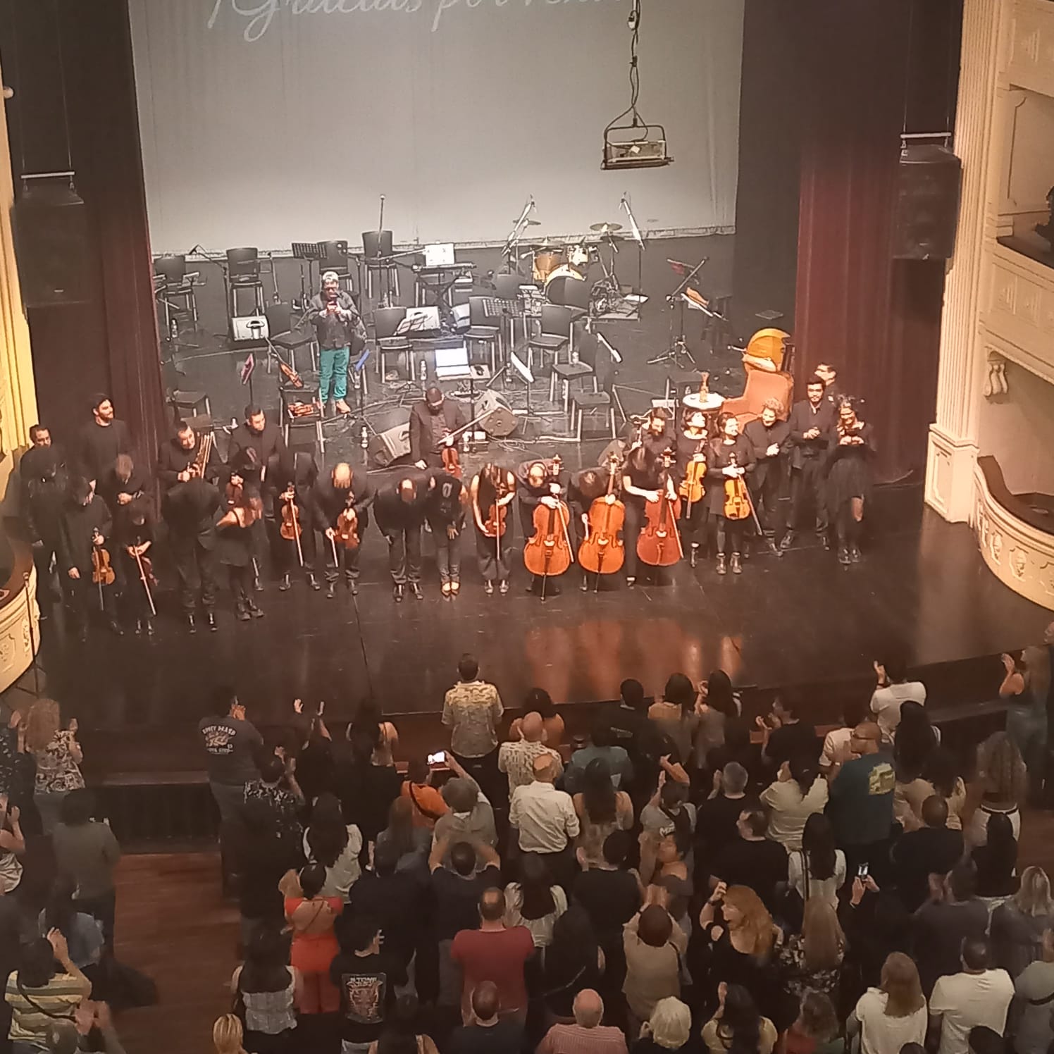 En un teatro lleno el concierto fue un paseo por la obra de Cerati, tanto con Soda Stereo como su etapa solista, y así fueron pasando Tratame suavemente, Zona de promesas, Corazón delator, Cactus, Crimen (mi favorita), Ciudad de la furia… entre otras genialidades… y cada una tenía su propio arreglo orquestal que nos iba introduciendo de una manera especial a cada tema. Y cada canción terminaba de tomar color con la voz de un gran artista que hacía suya cada palabra y la compartía con el público que terminaba coreando para llegar a un clímax único en cada estribillo.