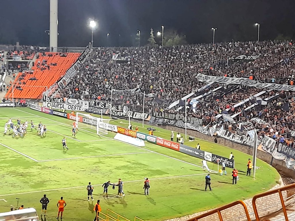Y fue de un lateral. Quiroga atrajo marcas hasta la mitad de la cancha y peinó el saque de manos, el fondo del Lobo se desarmó, Vidal apareció libre por detrás y abrió al lado opuesto para Ambrogio, quien tuvo tiempo de acomodarse, armar el remate y cruzarlo para dejar sin chances a Giovini. Explotó la popular Sur, la que ocuparon Los Caudillos del Parque.
