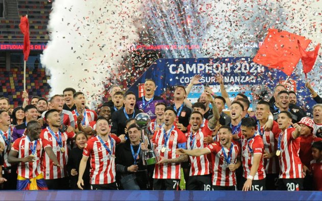 Estudiantes de La Plata se coronó campeón del Trofeo de Campeones al ganarle esta noche por 3 a 0 a Vélez en el estadio Único Madre de Ciudades, e igualó al conjunto de Liniers en cantidad de títulos nacionales.