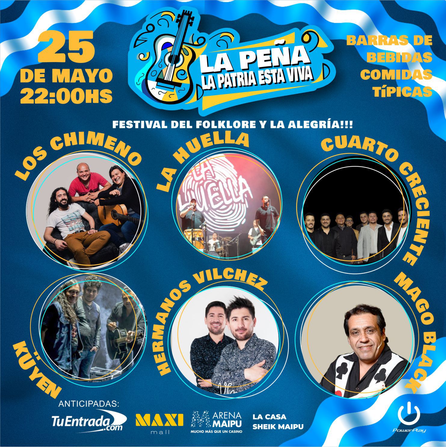 Un festival para celebrar la patria con música y humor. La Peña La Patria está Viva llega al Stadium Arena Maipú, con la actuación de grupos folklóricos mendocinos y participación del Mago Black. El sábado 25 de mayo, a partir de las 22, en el Stadium Arena Maipú. Las entradas están disponibles en Tuentrada.com, Maxi Mall, La Casa del Sheik y boletería del Arena.