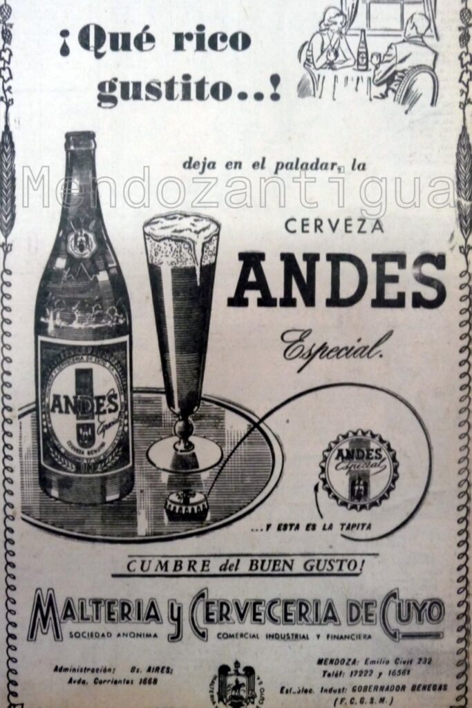 Tan arraigada esta esta fábrica de cerveza, que ya en los años ’40 ofrecía sus tradicionales productos: Andes blanca, y Cóndor negra, deleite de los mendocinos y provincias del Oeste argentino, y cuya publicidad radial es recordada por los memoriosos que vivieron esa época.