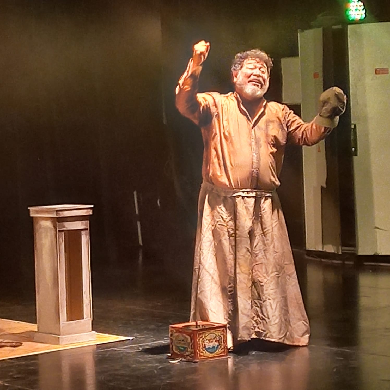 Estos personajes que Guillermo Troncoso pone sobre escena… un hombre ciego, un italiano muy preocupado por la facha, un clérigo muy biri biri y un político en busca de su propia estatua le enseñan a Lázaro a mendigar y los distintos tipos de mendigos… hay muchos, no pienso spoliar… deberán ver la obra en cuanto tengan la posibilidad… pero sí voy a ver si aprendí algo sobre mendigar…