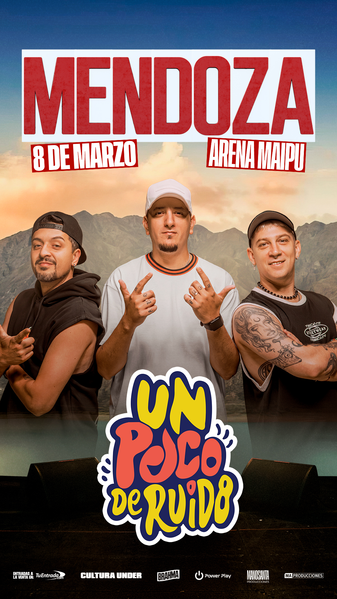 El programa de streaming de cumbia llega a Mendoza. Un Poco de Ruido (unpocoderuidook) trae su propuesta en vivo en los escenarios, en una noche que promete mucha música y diversión. El sábado 8 de marzo, en el Arena Maipú Stadium. Las entradas están disponibles en Tuentrada.com, Maxi Mall y boletería del Arena.
