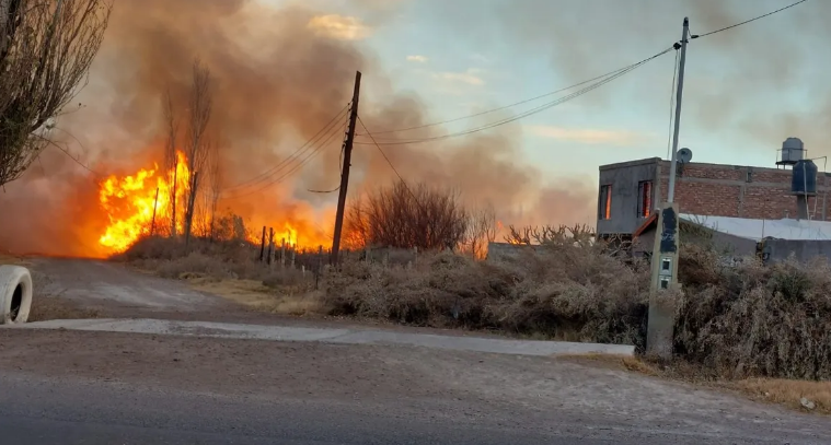 Los bomberos consiguieron sofocar a tiempo el incendio que se había desatado en un campo de Los Corralitos (Guaymallén) a raíz del fuerte viento Zonda.