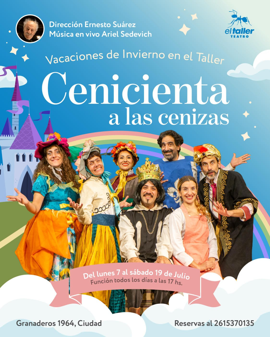 Del lunes 7 al sábado 19 de julio, a las 17 horas, el escenario del Teatro El Taller se llena de humor, magia y juego con Cenicienta a las Cenizas, la obra con la que Ernesto “Flaco” Suárez (elflacosuarezz) y el elenco de El Taller (teatroeltaller) dicen presente en la temporada de vacaciones de invierno 2025 en Mendoza.