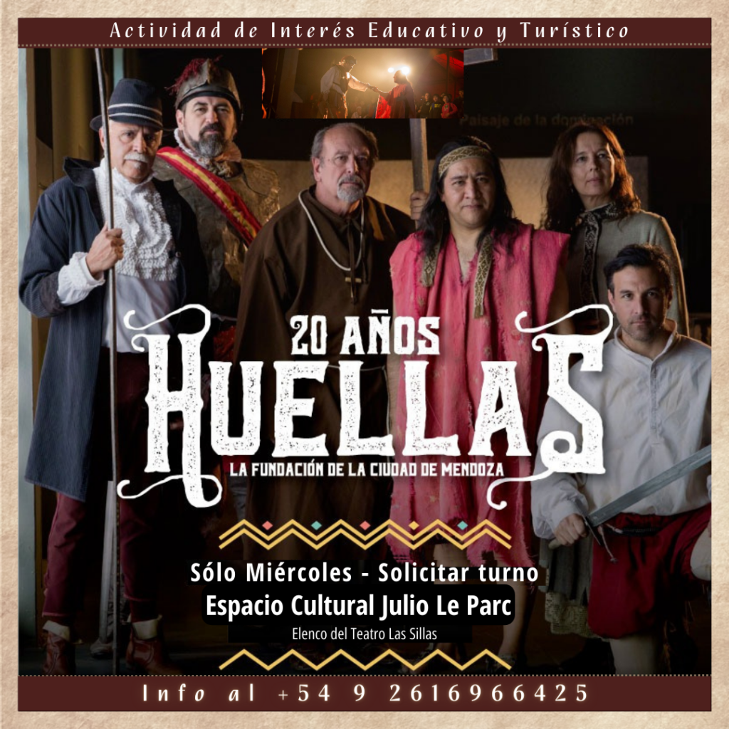 Una obra que revive los orígenes y secretos de la Ciudad de Mendoza, desde sus raíces hasta su fundación. En cada función, «Huellas» nos sumerge en una experiencia teatral única, donde el