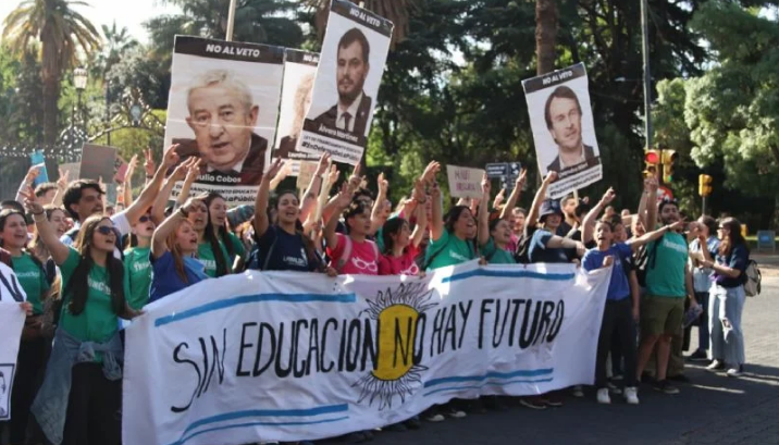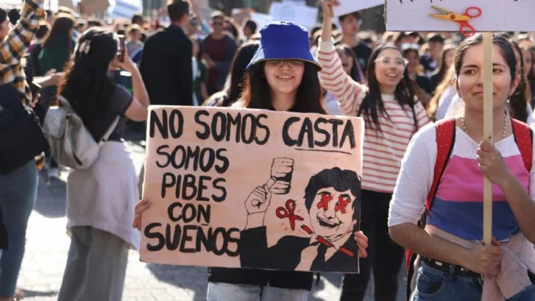 Muchos de los carteles y cánticos de los manifestantes apuntaron contra el presidente Javier Milei y su intención de vetar la ley de financiamiento educativa que fue aprobada en el Congreso.