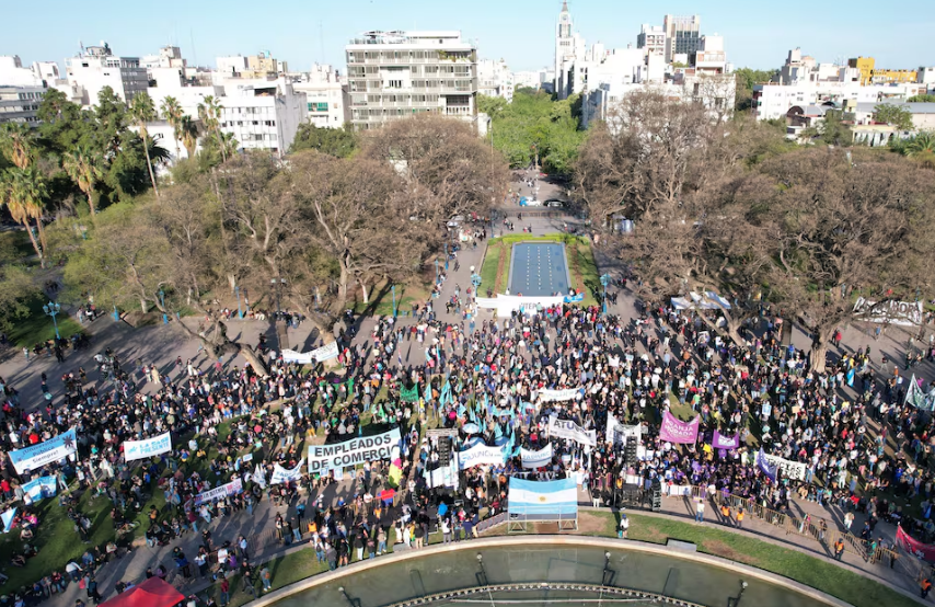 Fue notoria la presencia de investigadores, docentes y becarios del Conicet. Con una grand bandera aparecieron los representantes del Centro Empleados de Comercio. También estuvo la CGT.