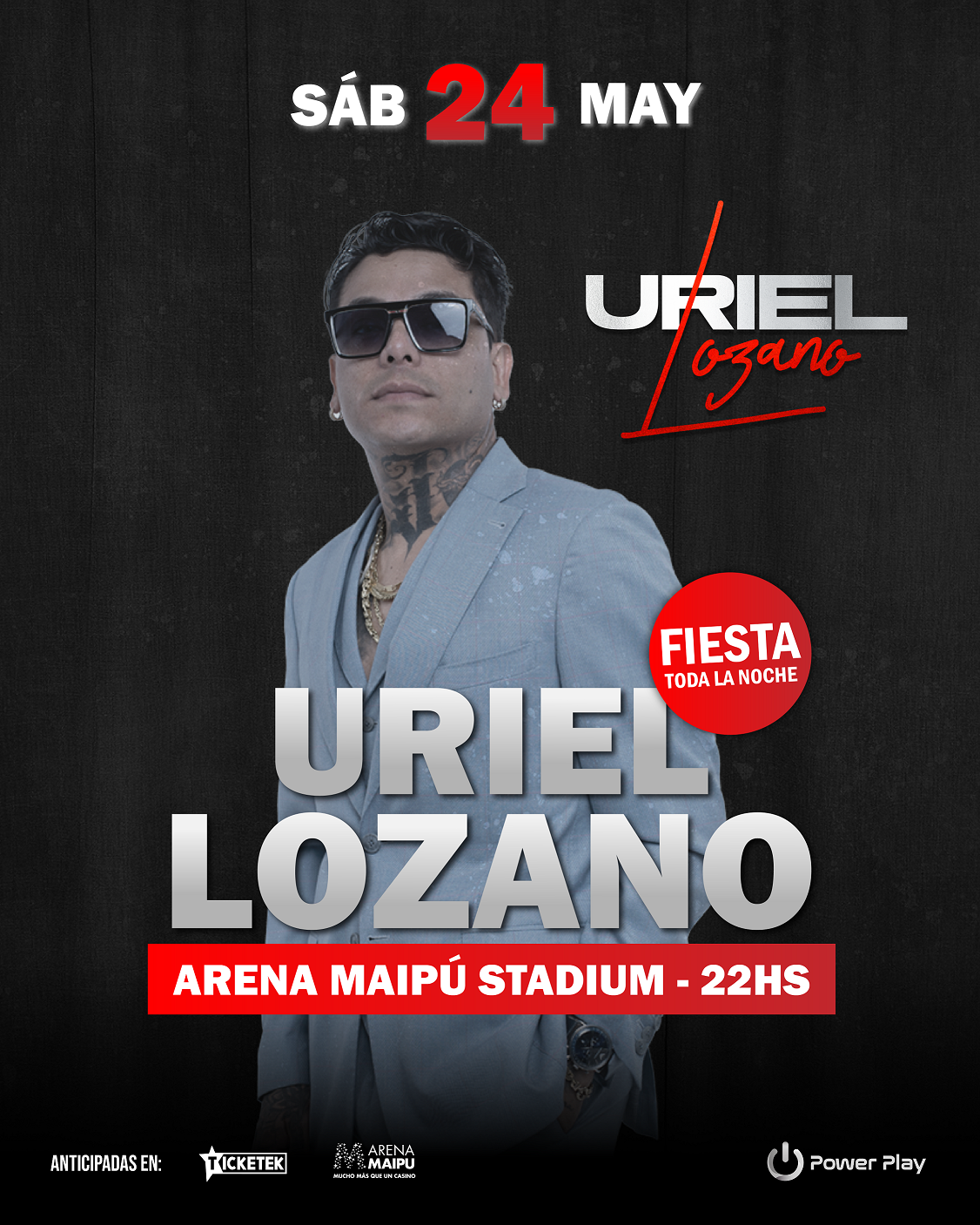 El reconocido cantante Uriel Lozano (uriellozanooficialok), también conocido como «El Gran Señor» de la cumbia santafesina vuelve al Arena Maipú Stadium con su nueva gira Hay Más de Mi.