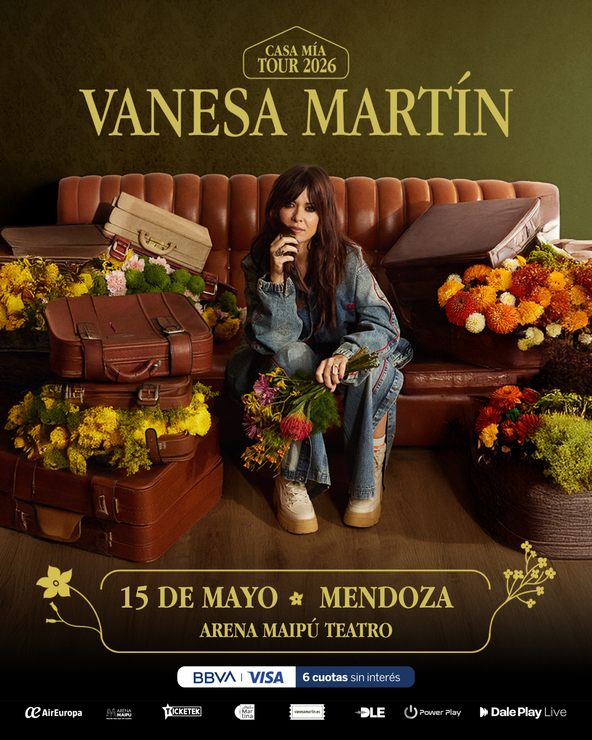 En el marco de su gira Argentina 2026 se presentará el Viernes 15 de mayo, en el Arena Maipú Teatro. Las entradas están disponibles en Ticketek.com.ar (clientes BBVA Visa 6 cuotas sin interés) y boletería del Arena (solo en efectivo).