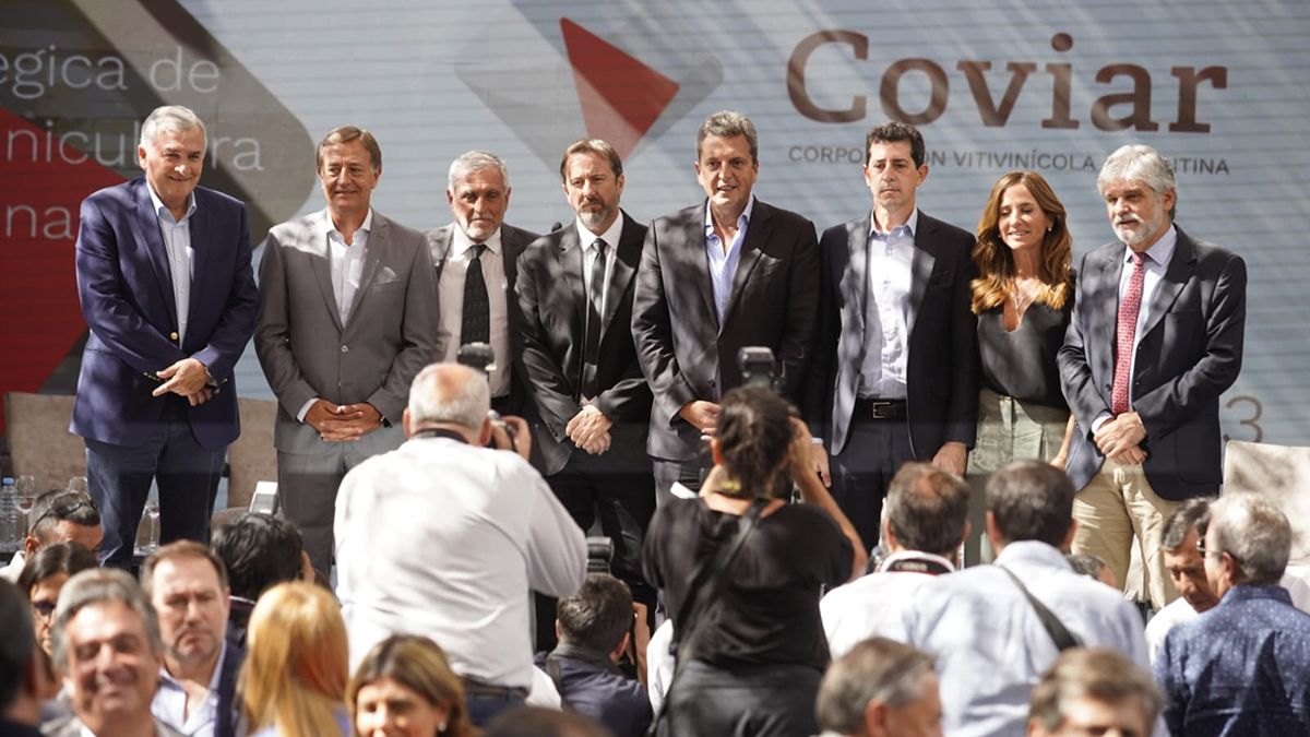 El ministro de Economía de la Nación, Sergio Massa, se dirigió a los presentes en el Desayuno de la Coviar y aseguró que la situación de la vendimia (caída de la producción) exige medidas urgentes para ayudar a los productores.